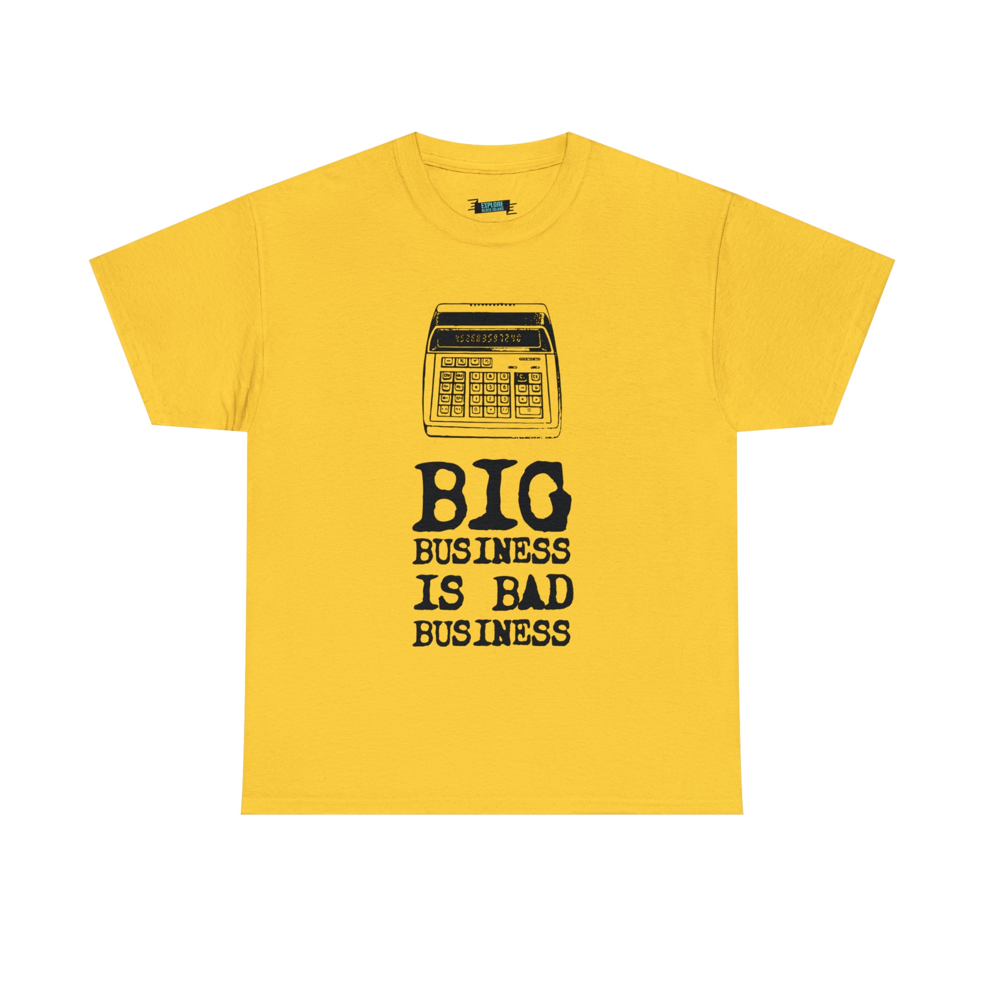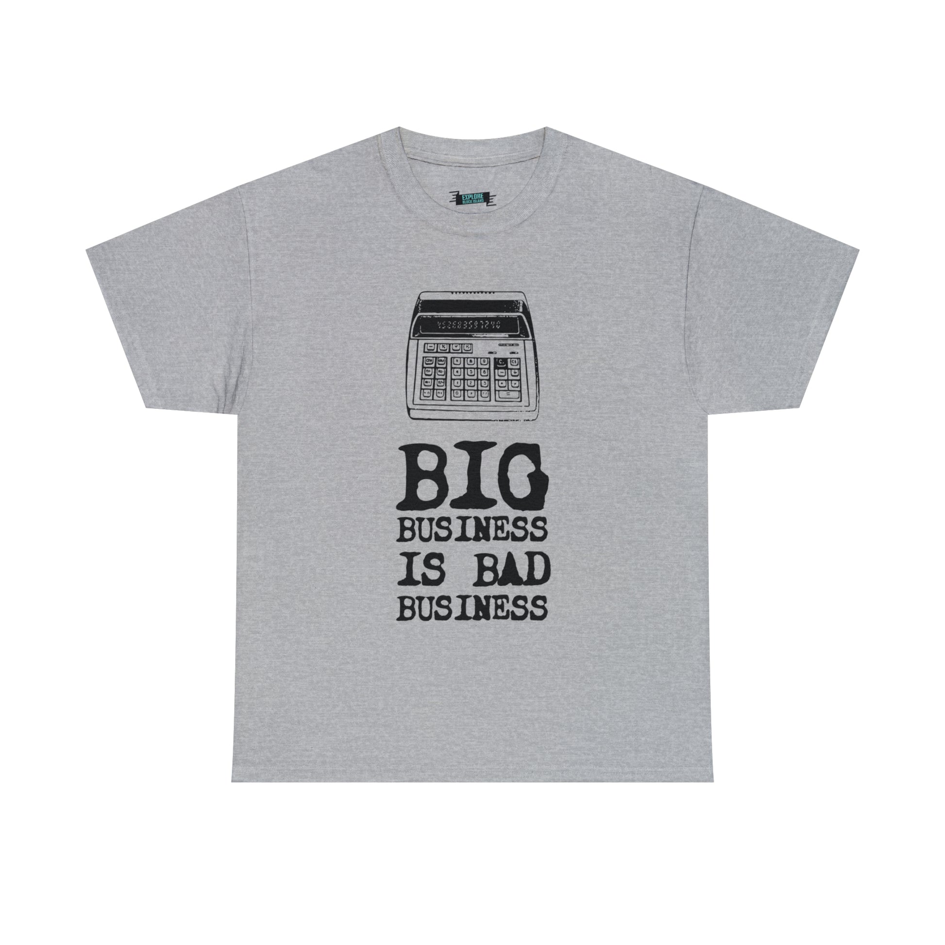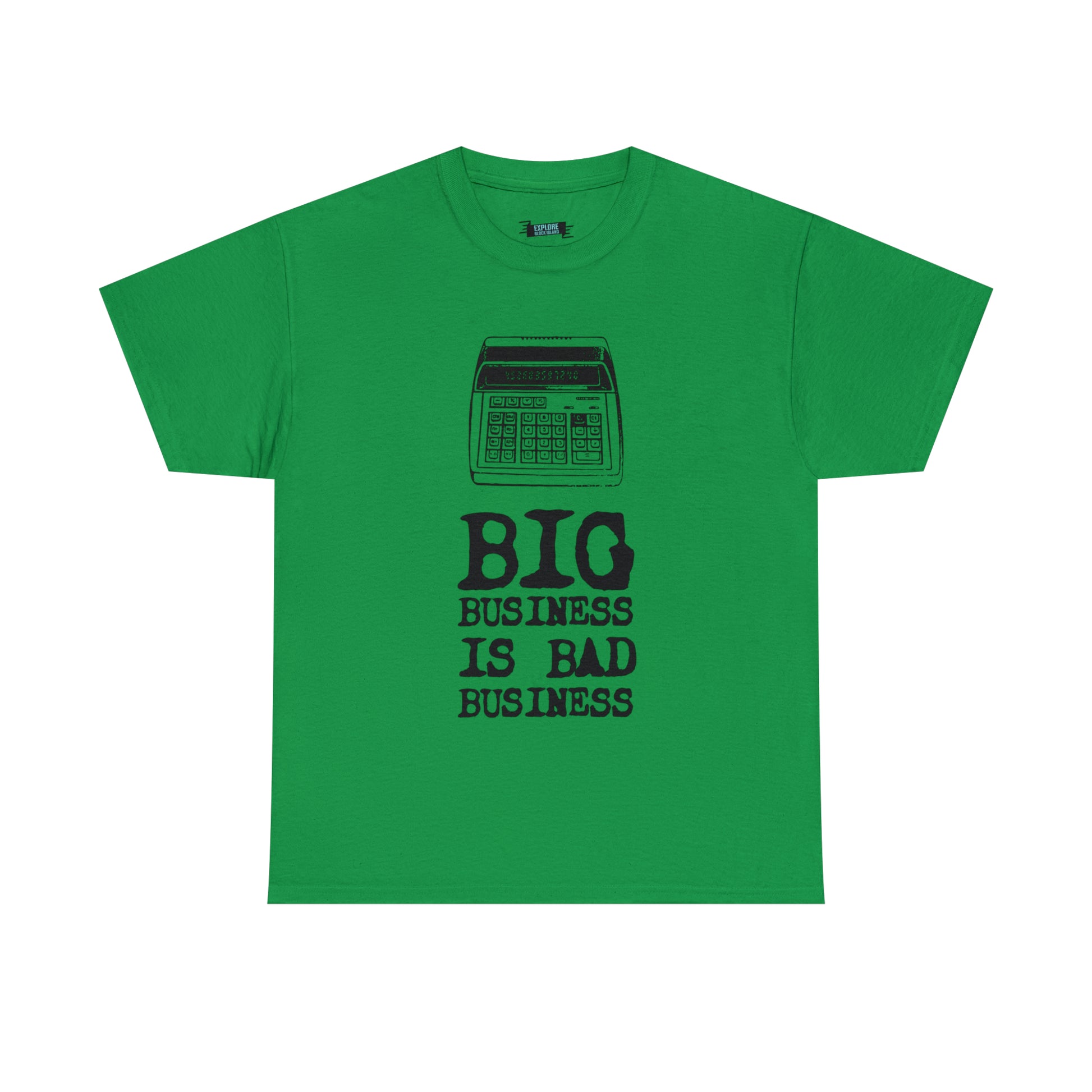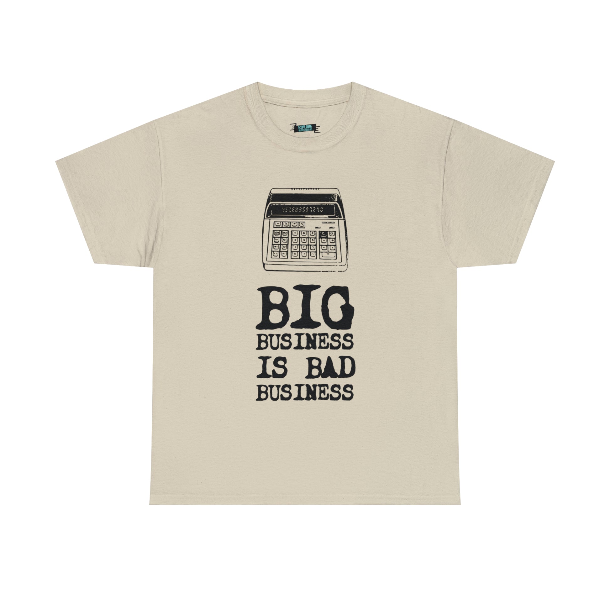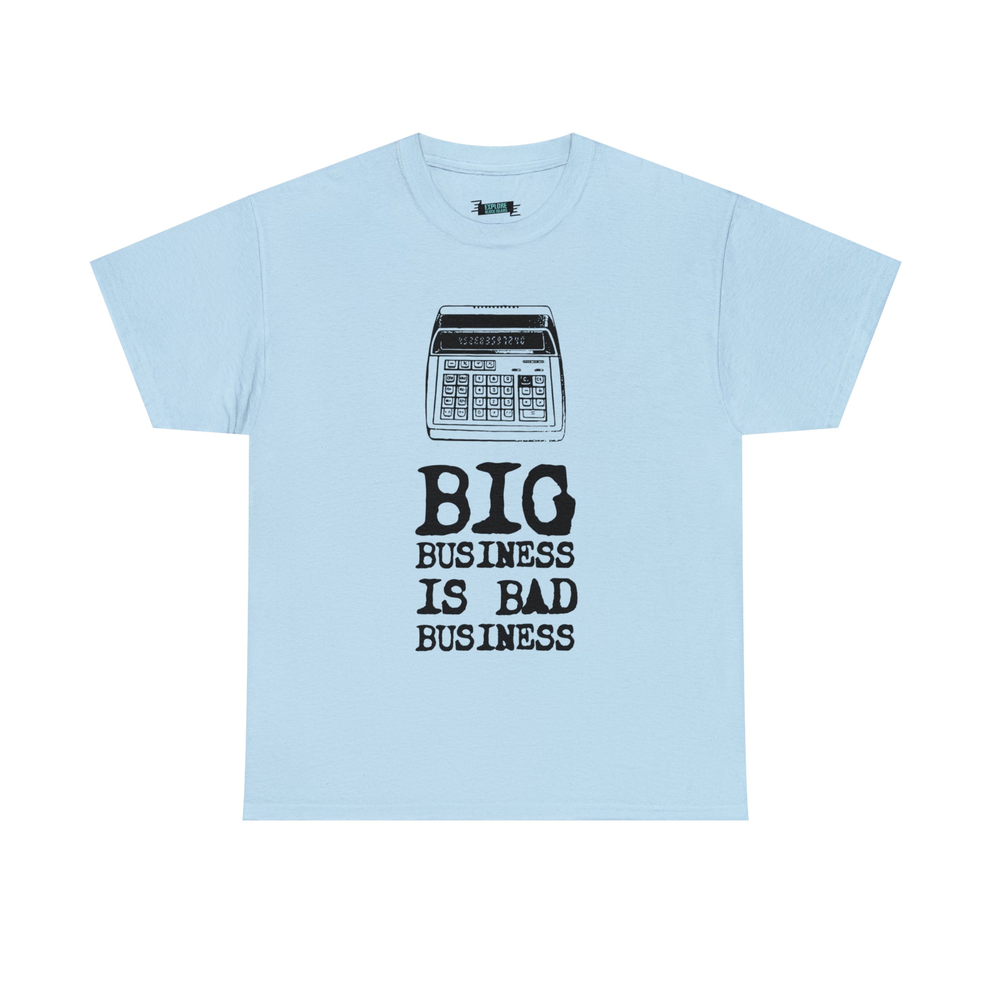 Do you remember the days when life was simpler on Block Island? When checks were calculated on old adding machines, and handwritten ledgers kept the Surf Hotel's history alive? Explore Block Island invites you to celebrate the island's rich heritage and rally against the tide of change with our "Big Business is Bad Business Tee."