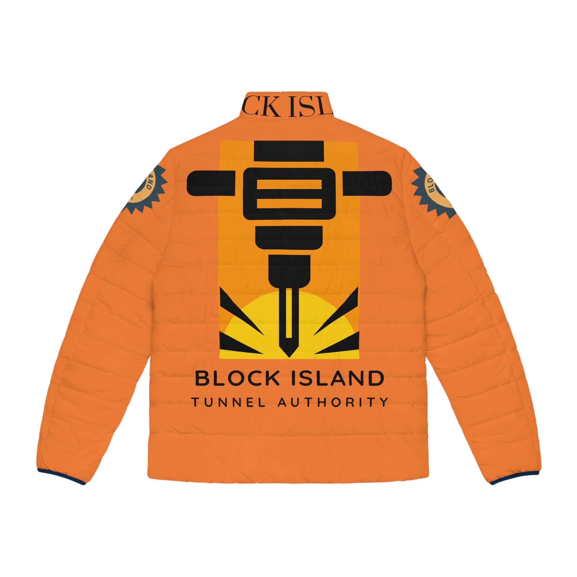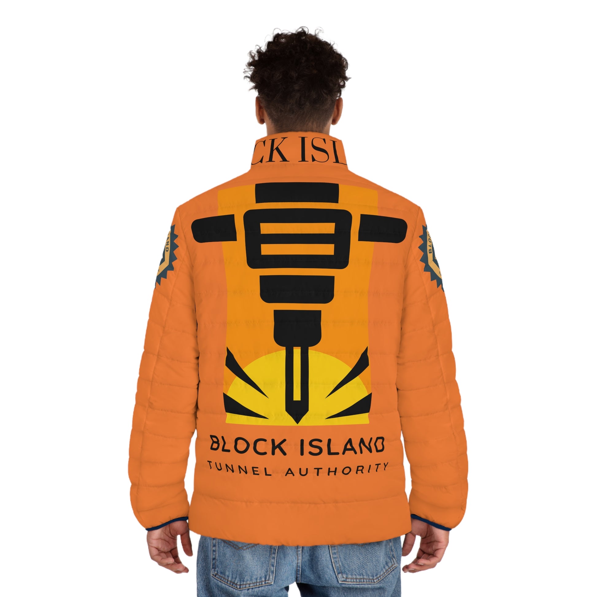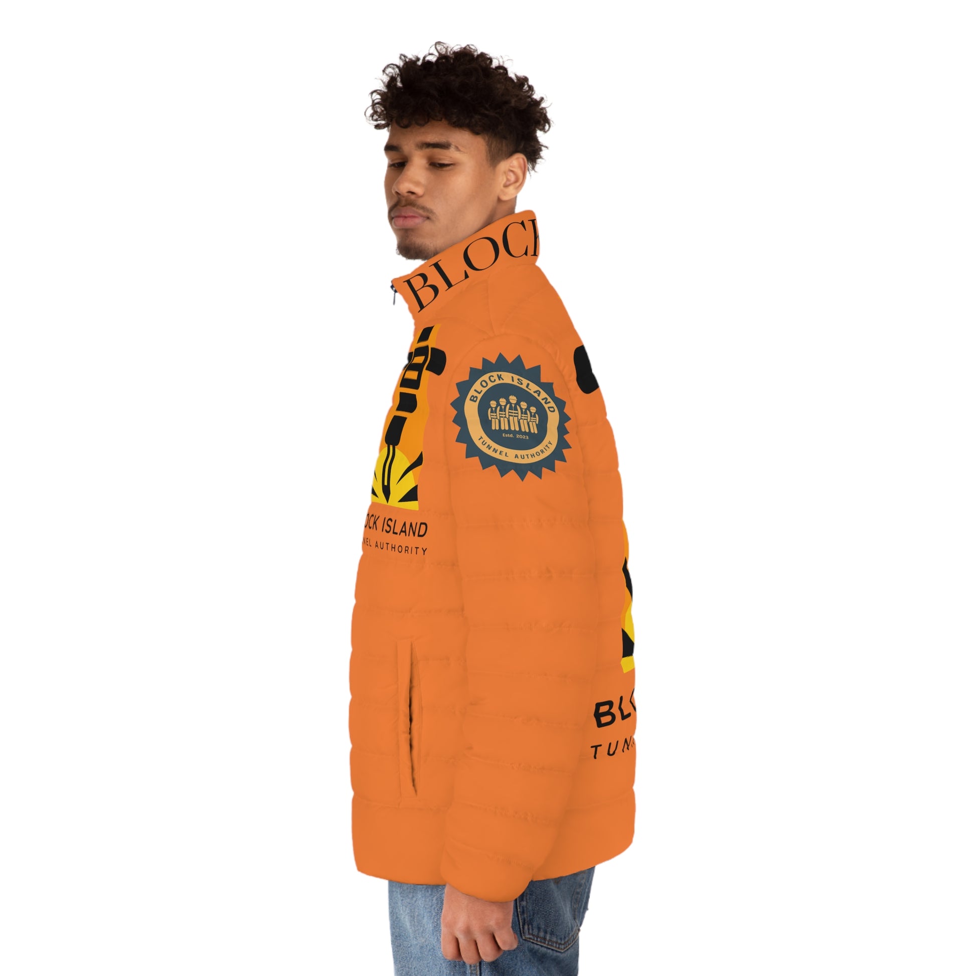 Man's not hot! Looking for a jacket that combines style, comfort, and durability? Look no further than the BITA Hammer Puffer Jacket from Explore Block Island! This jacket comes in a vibrant shade of orange that's sure to turn heads, and features the iconic hammer logo on both the front chest and the back.