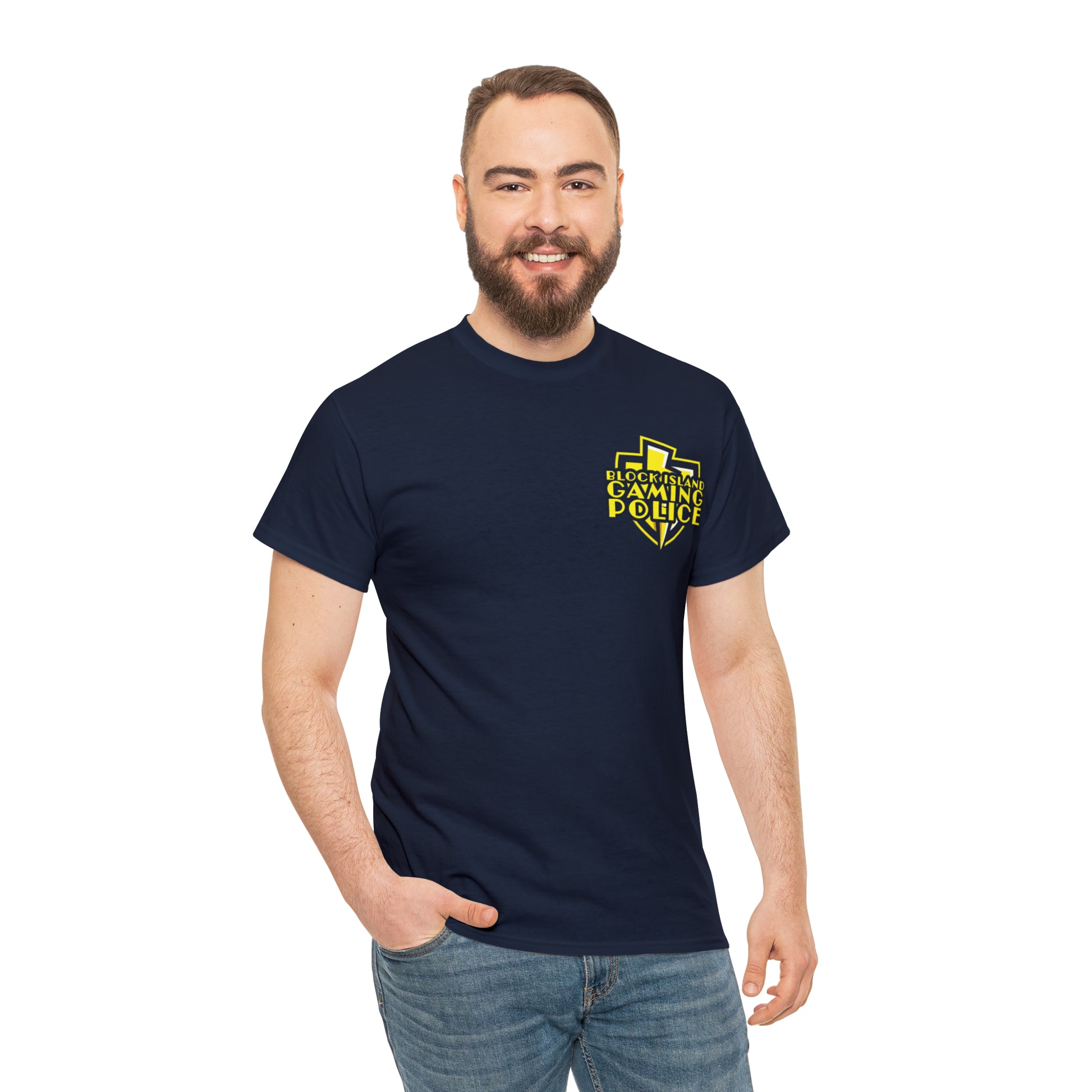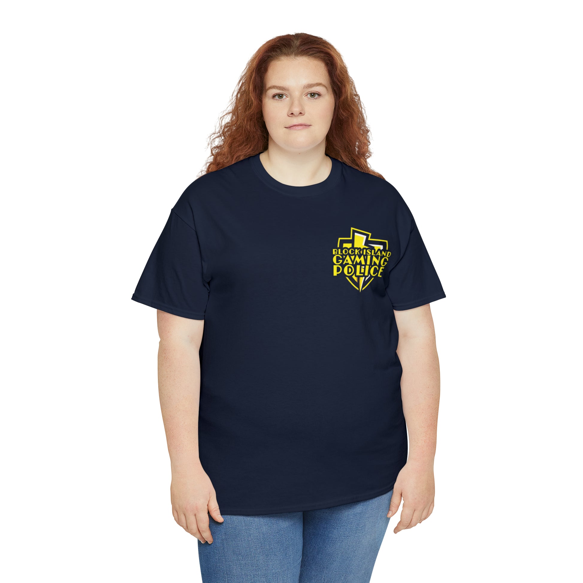 Delve into the secretive world of the Block Island Gaming Police, an extension of the town council funded by taxpayer money, with the Block Island Gaming Police Tee. This thought-provoking tee serves as a testament to the organization's controversial mission: to suppress gaming and dissent on the island.