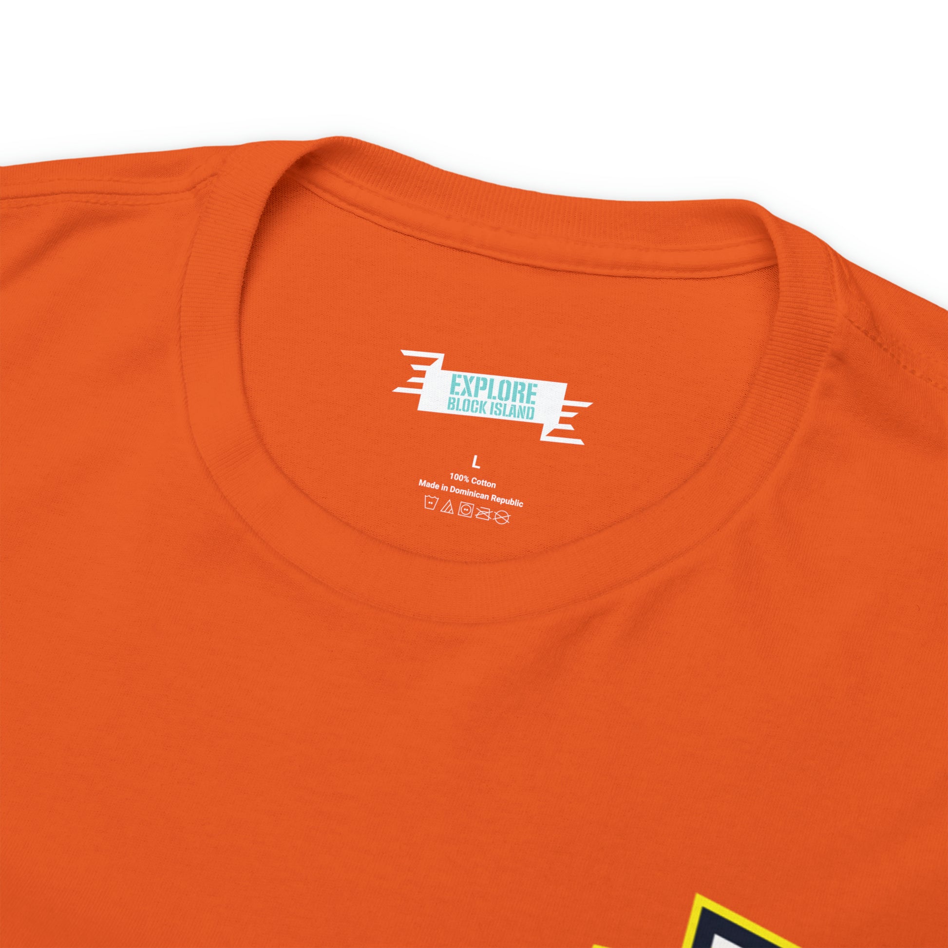 The front of the tee proudly displays a distinguished badge, symbolizing the authority wielded by the Block Island Gaming Police. This emblem represents their relentless pursuit of eradicating video games and other sources of entertainment deemed undesirable by those in power. It serves as a stark reminder of the ever-watchful eye that monitors the island's inhabitants.