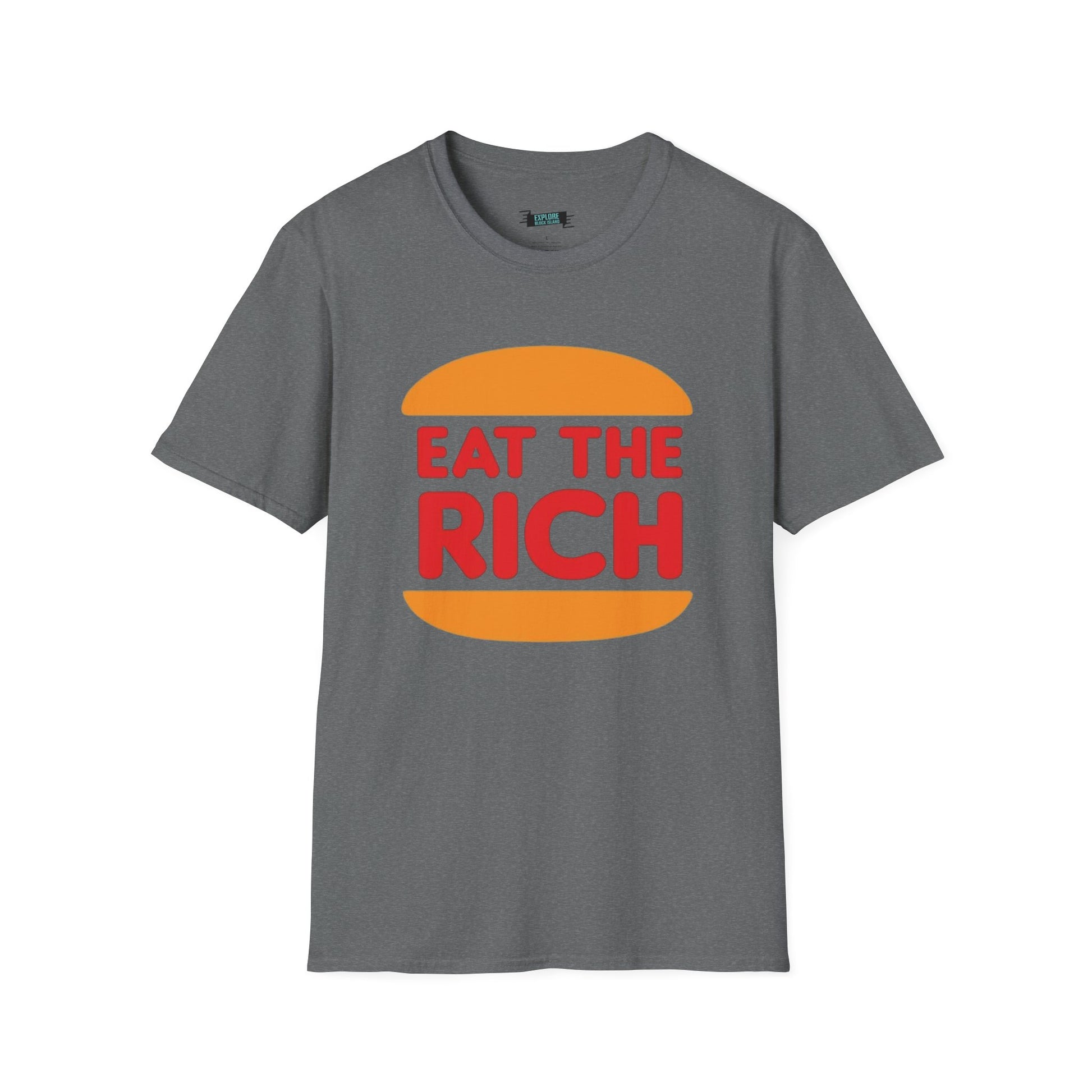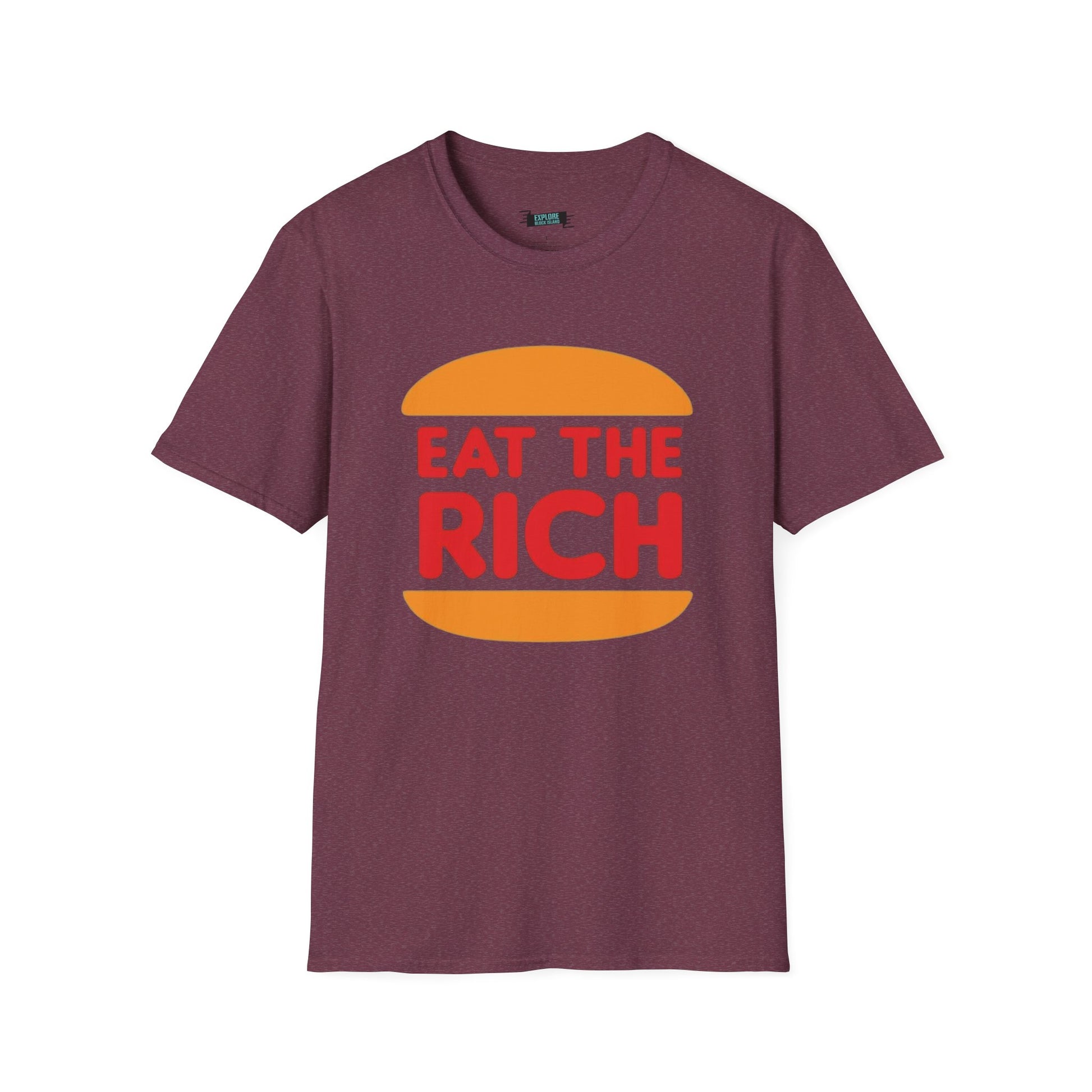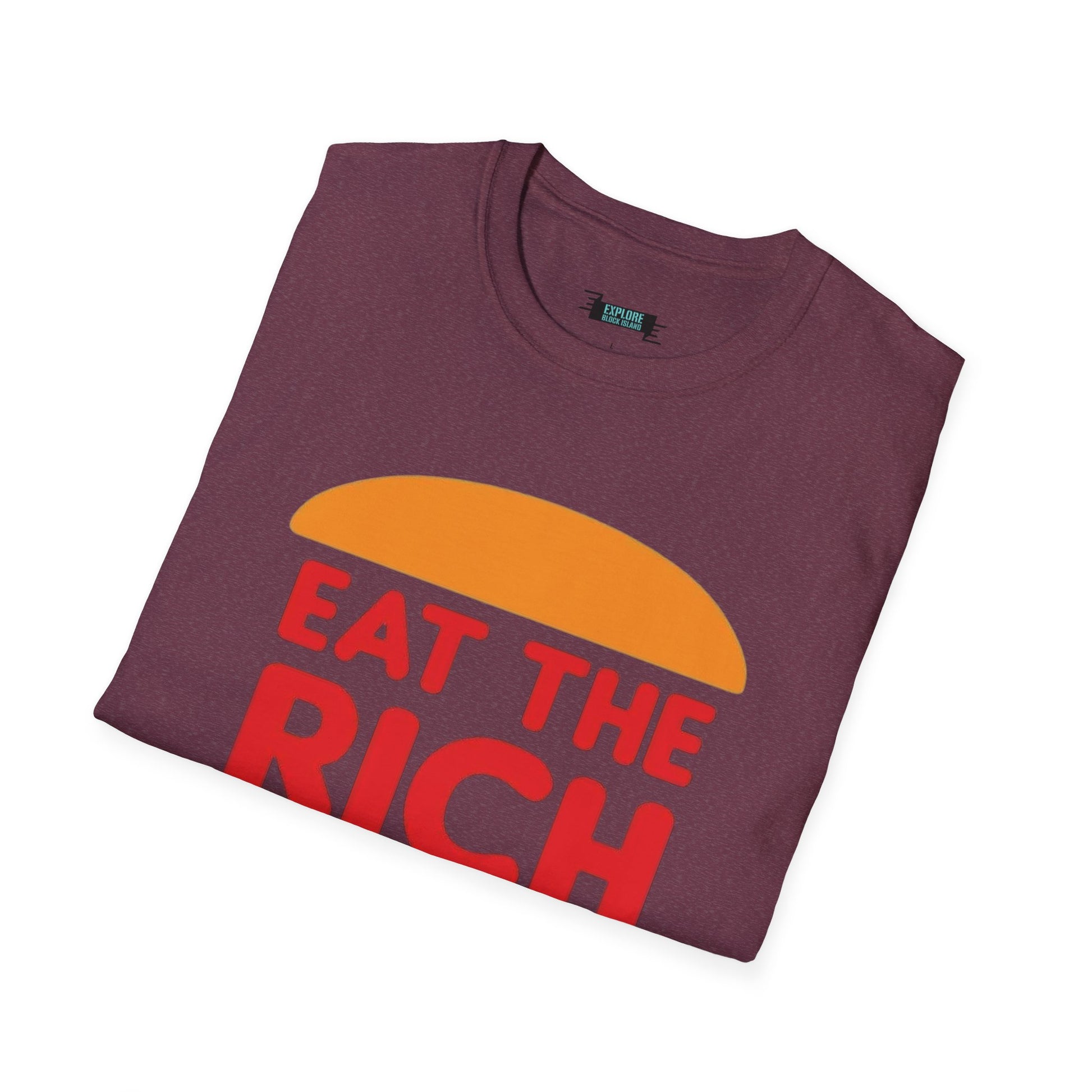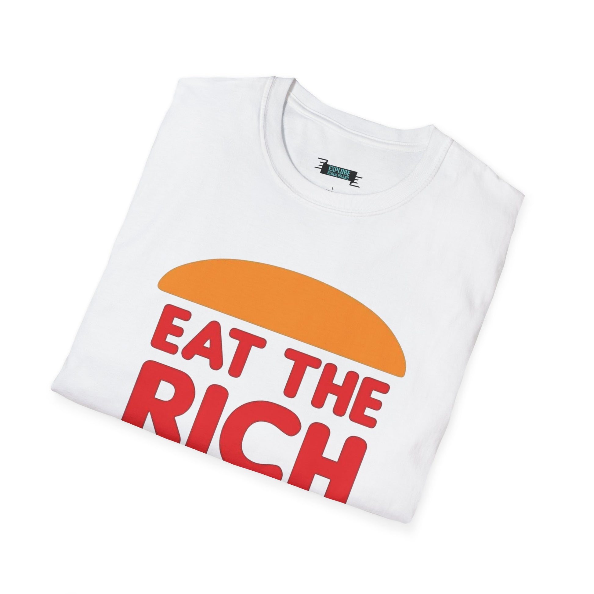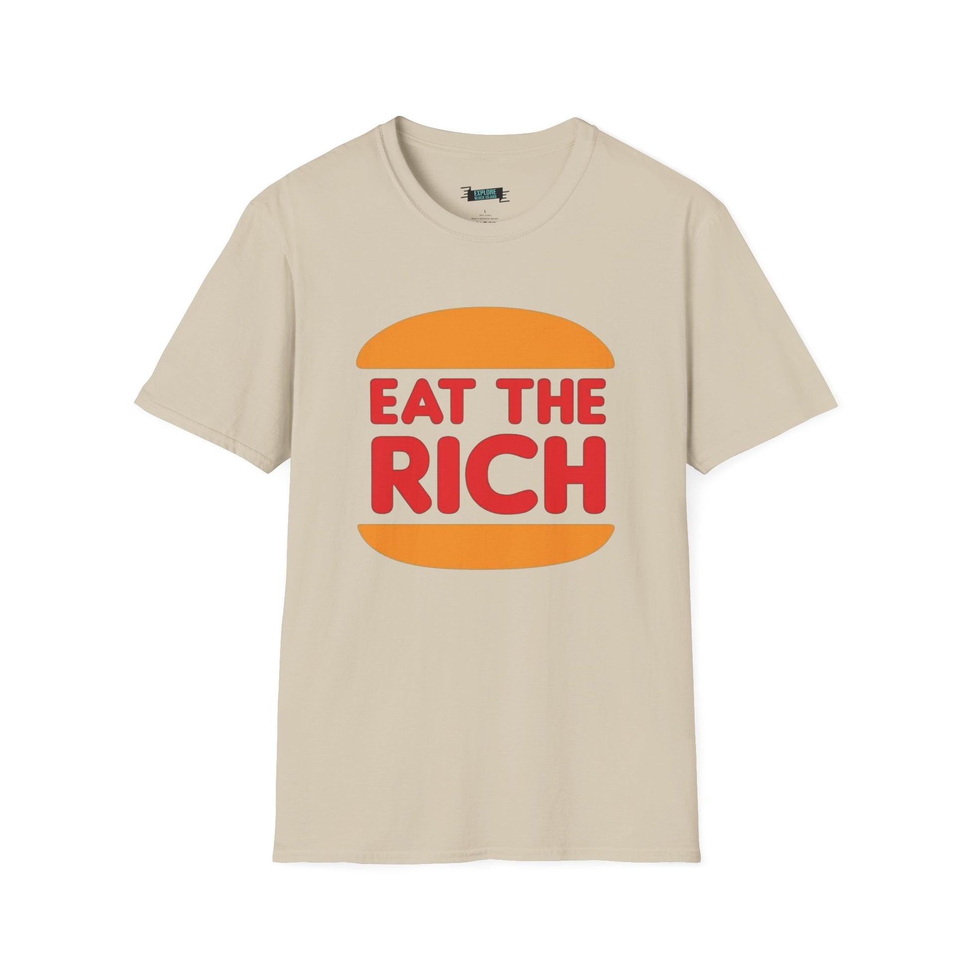 Introducing the Eat the Rich Tee from Explore Block Island, showcasing a sustainable solution for combatting working class poverty on Block Island! Many workers on Block Island cannot afford to eat at the restaurants where they work, they face low wages and high housing costs, and the conditions are terrible. I can personally attest to what it's like to share a room with five other men and share a bathroom with 45 people. Yet the land barons and slumlords on Block Island still prey on us, charging us through the nose to live in squalor as we serve caviar to the ultra wealthy.