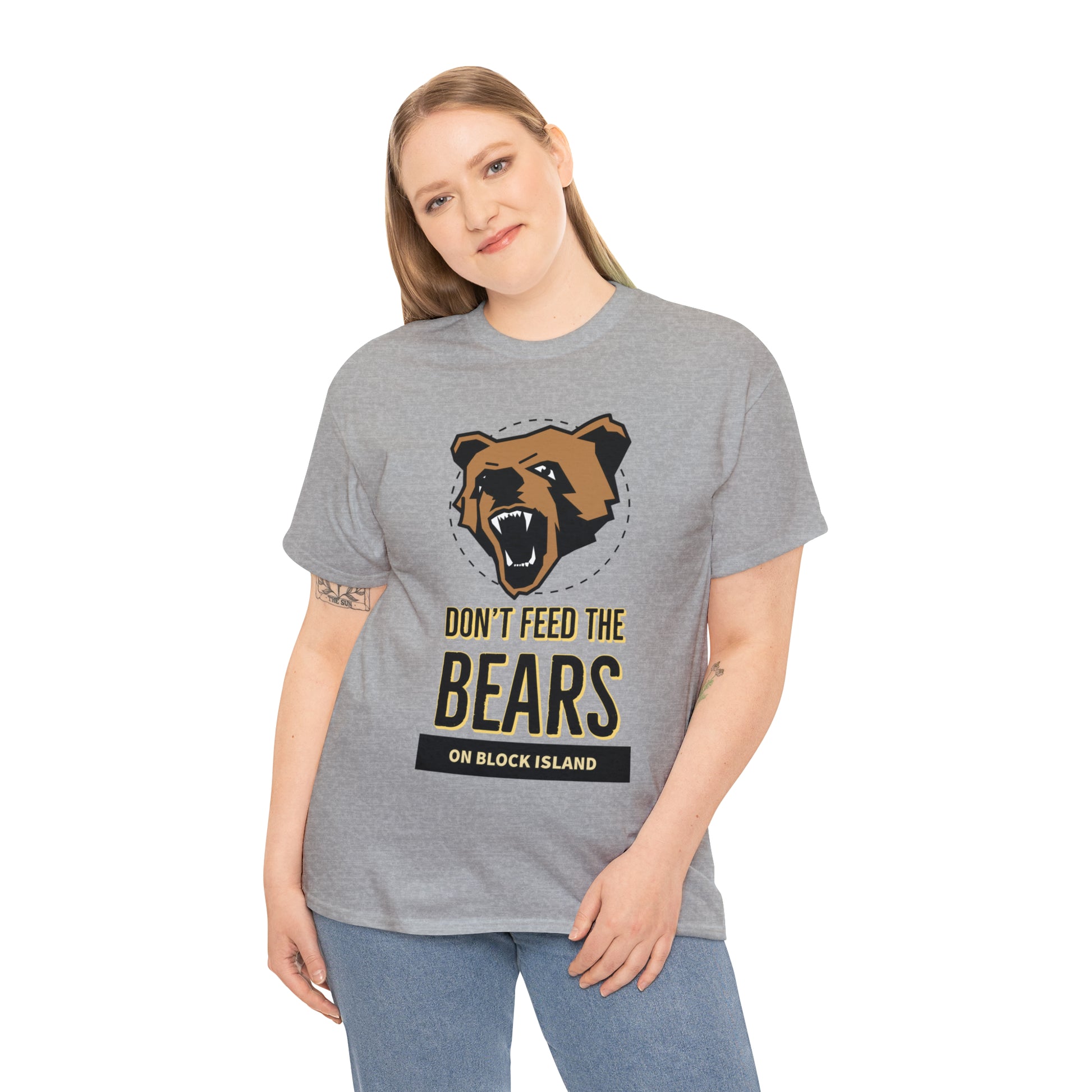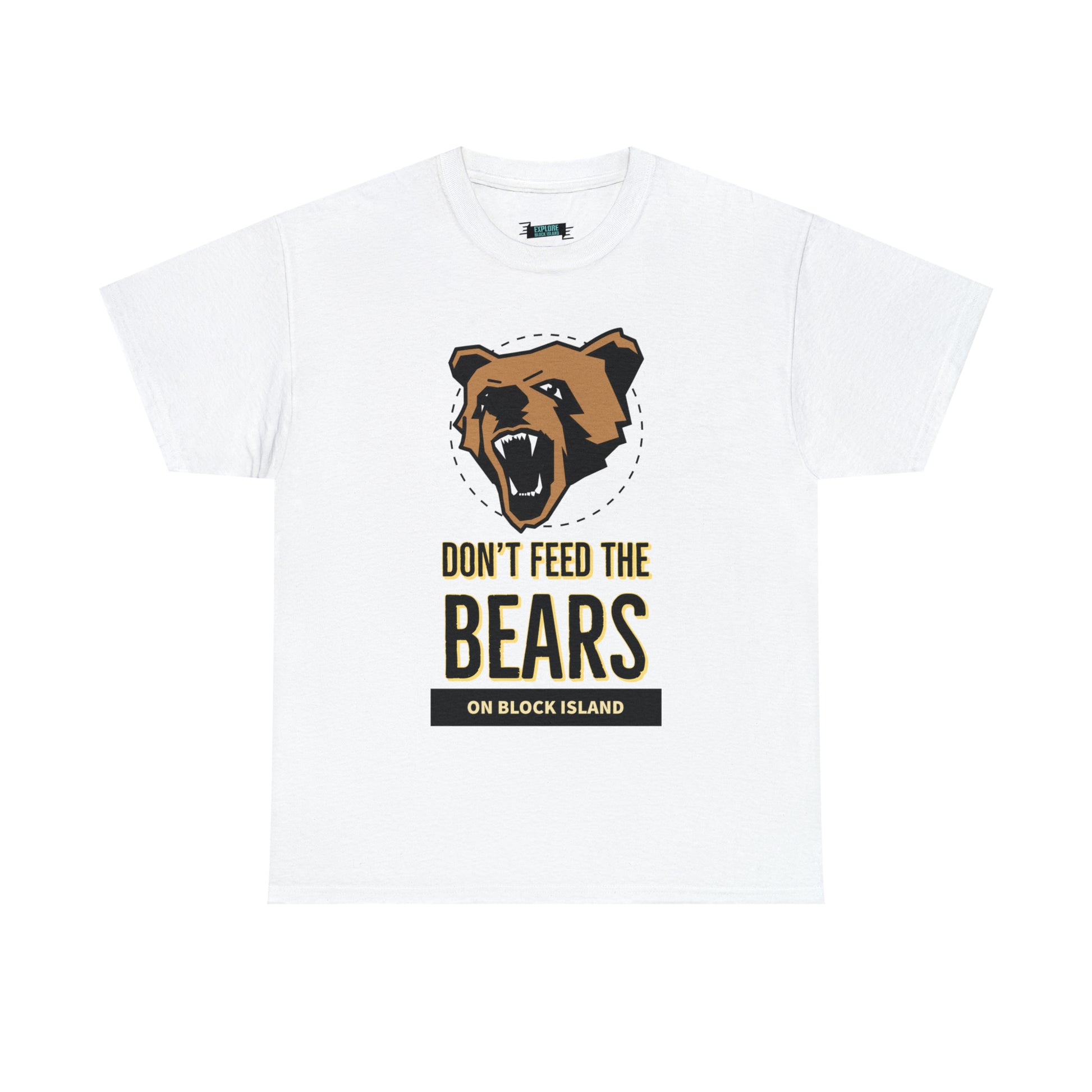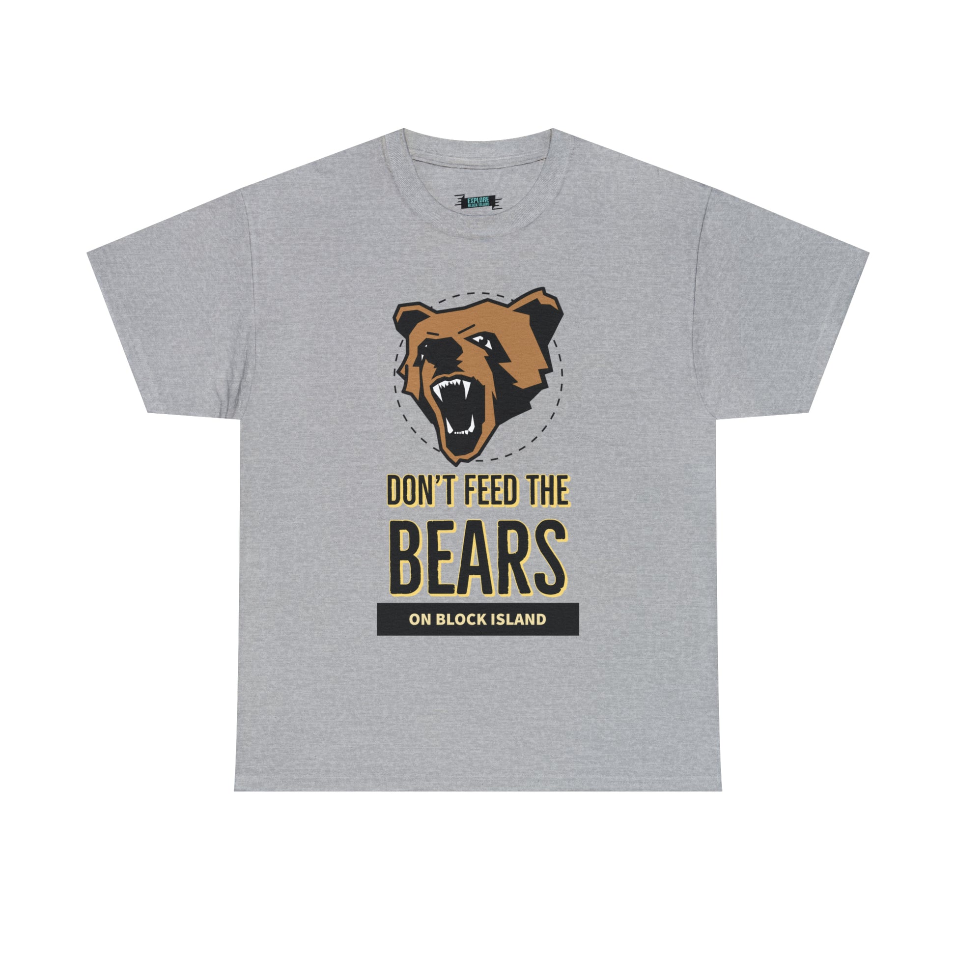 Introducing the gripping Don't Feed The Bears Tee, available exclusively on the Explore Block Island Website. This captivating design aims to share cautionary tales and raise awareness about the potential dangers that tourists can encounter when interacting with bears.