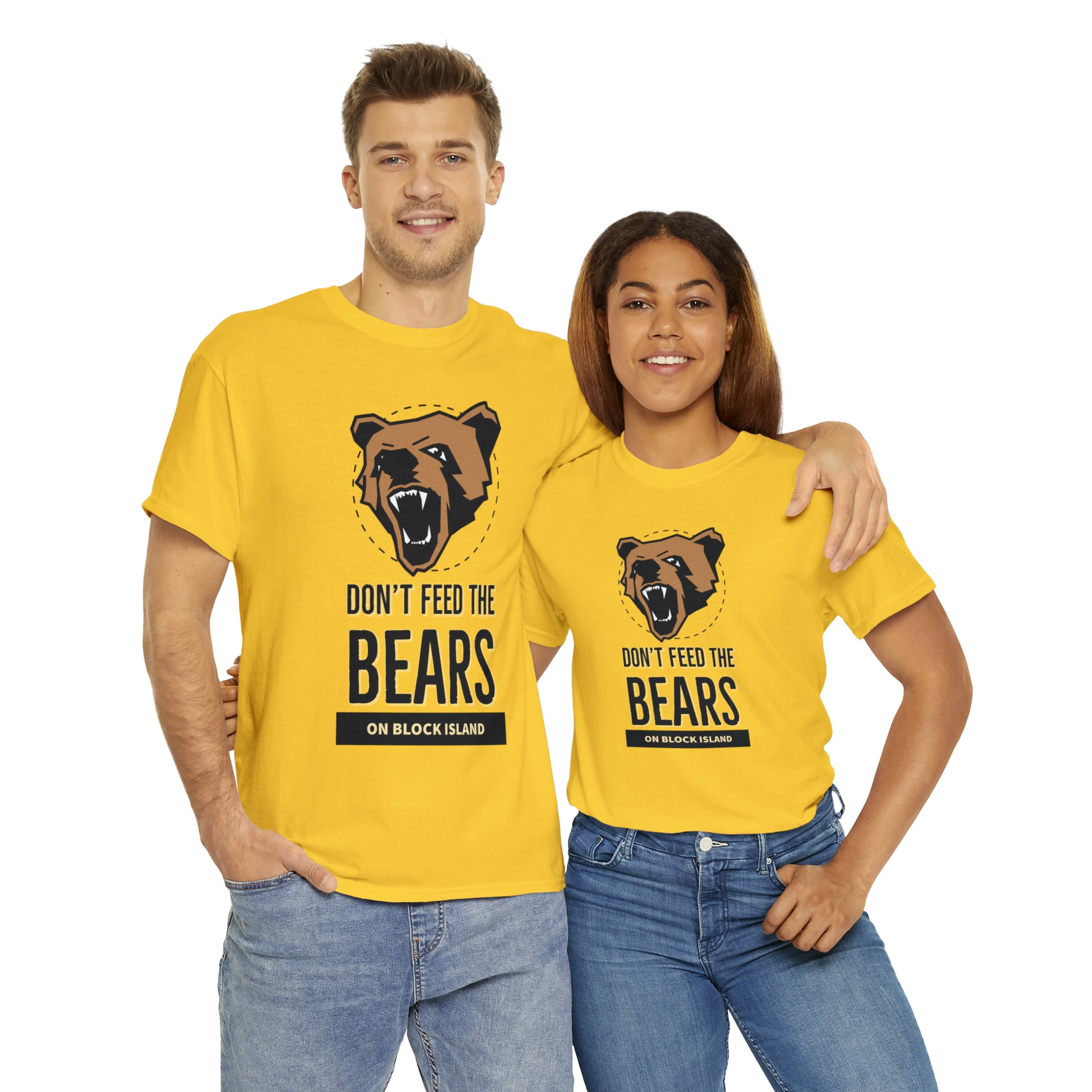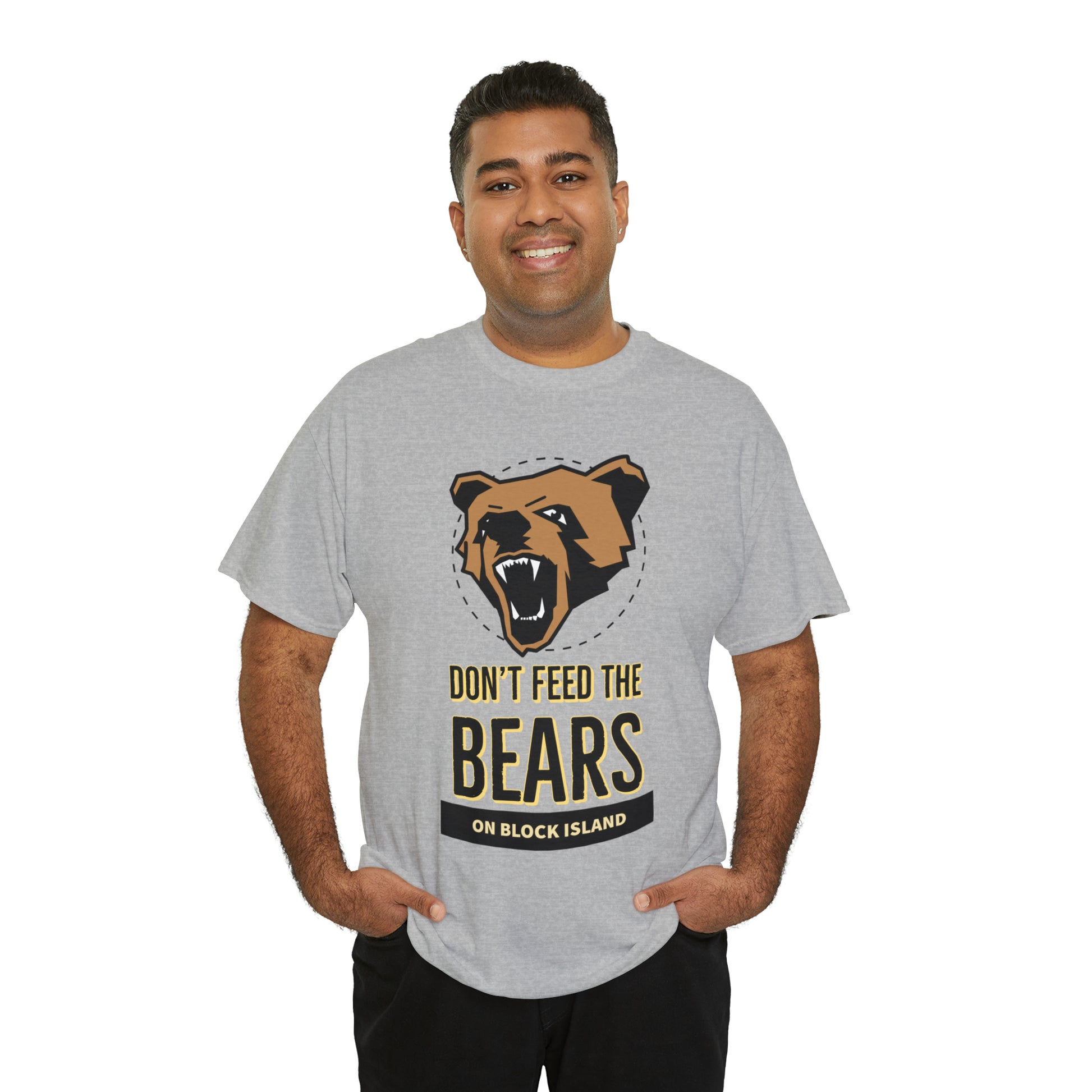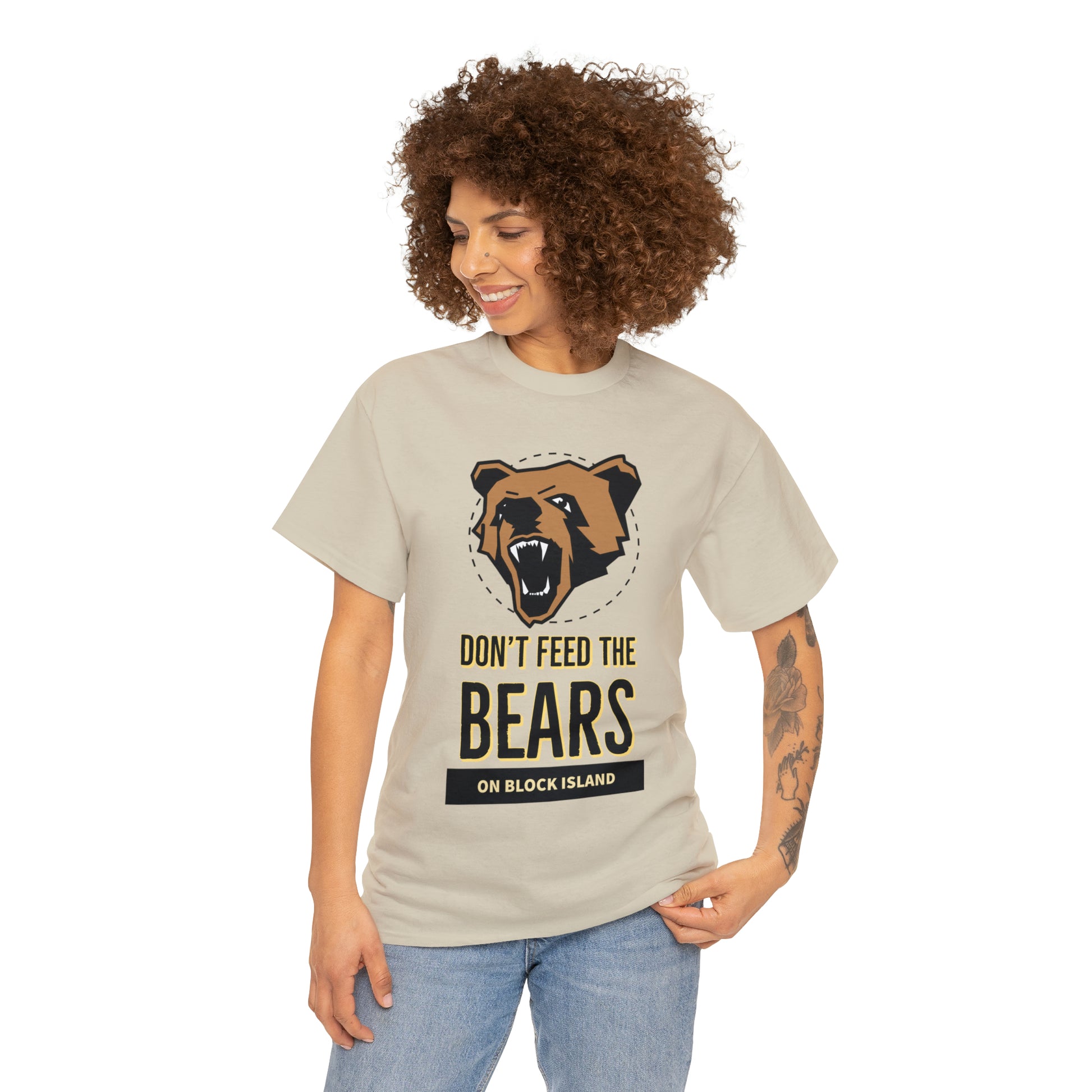 Introducing the gripping Don't Feed The Bears Tee, available exclusively on the Explore Block Island Website. This captivating design aims to share cautionary tales and raise awareness about the potential dangers that tourists can encounter when interacting with bears.