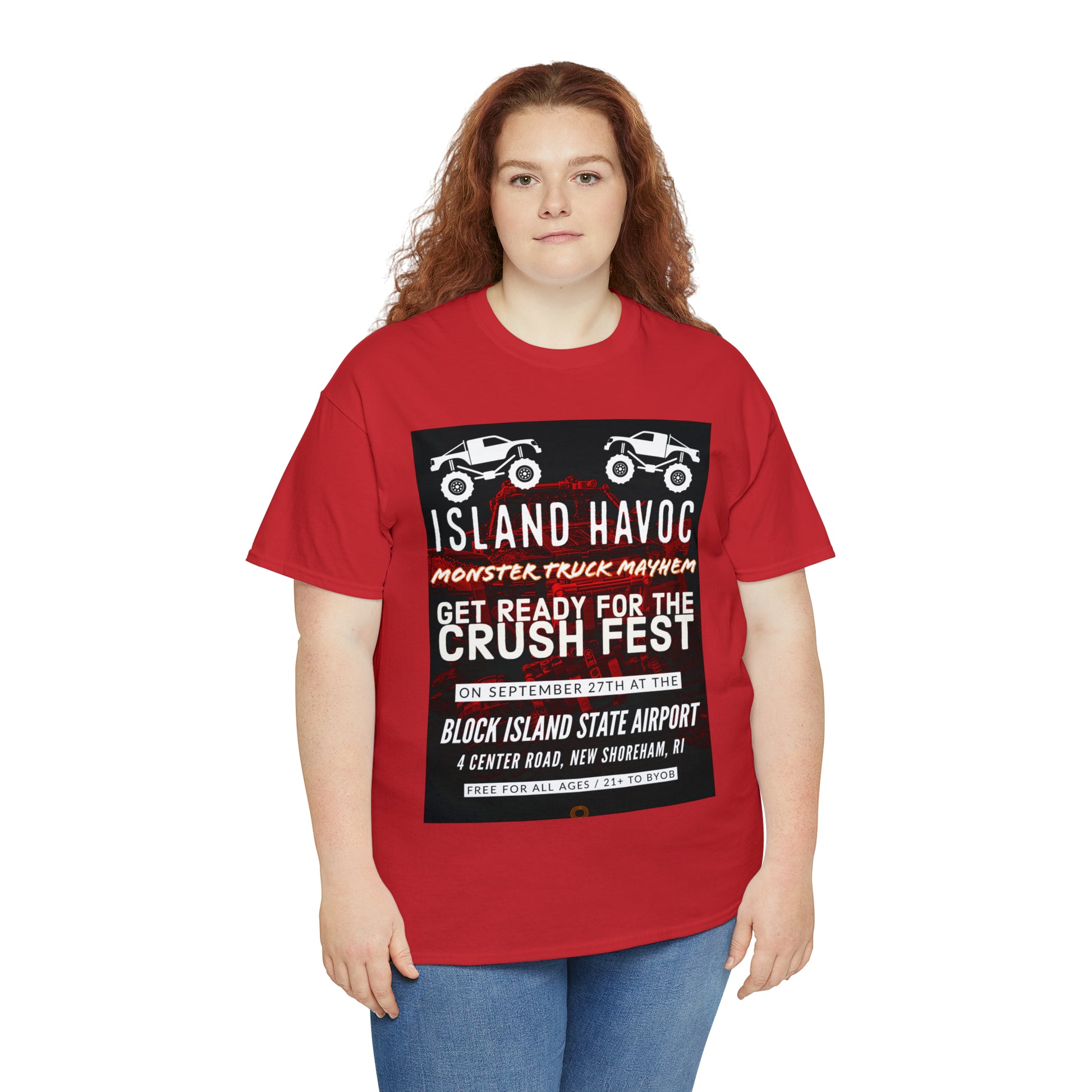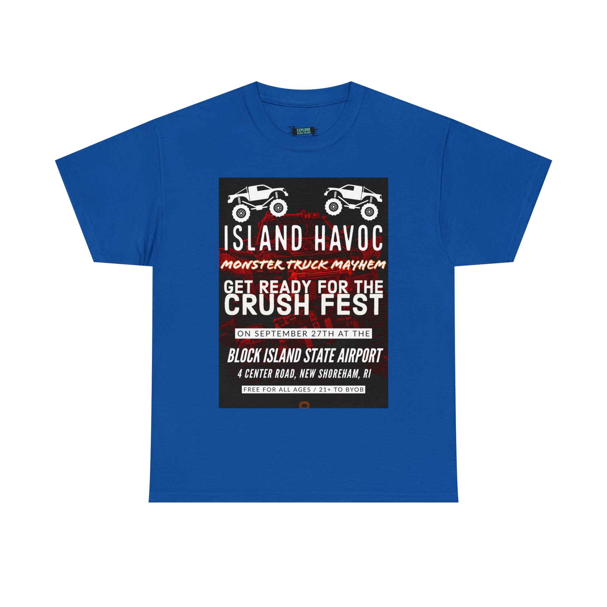 Get ready for an adrenaline-fueled spectacle that will shake Block Island to its core! Introducing the Island Havoc Tee, a bold and electrifying design that pays homage to the thrilling monster truck mayhem coming to town. This tee, designed by local artists, captures the essence of the high-octane excitement awaiting you.