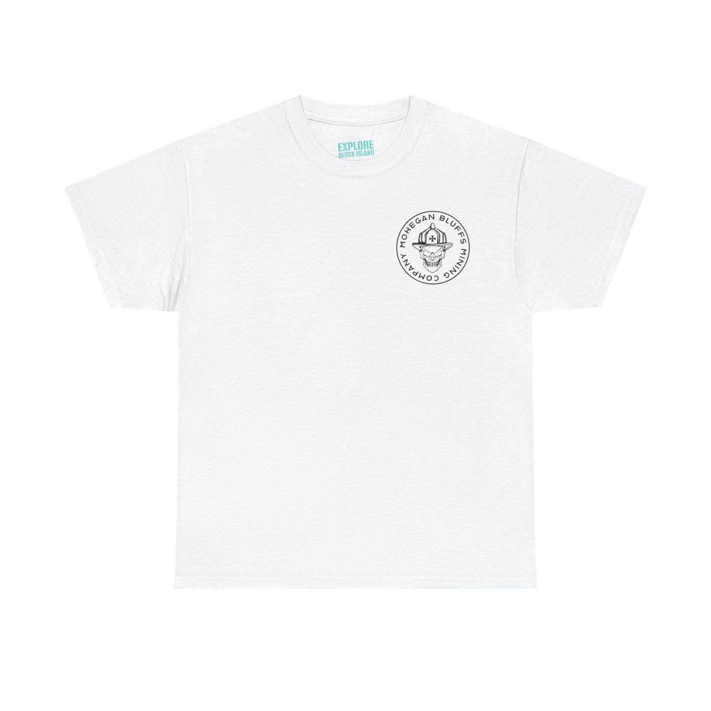 There's diamonds in the bluffs and the Mohegan Bluffs Mining Company is here to find them! Using the latest in targeted explosive technology and at the urging of the New Shoreham Town Council, we'll be turning the coast line into a strip mine! Raise awareness of the project, show your support or voice your opposition by wearing this limited edition tee from Explore Block Island! It's got a skull in a hard hat on it. Badass!