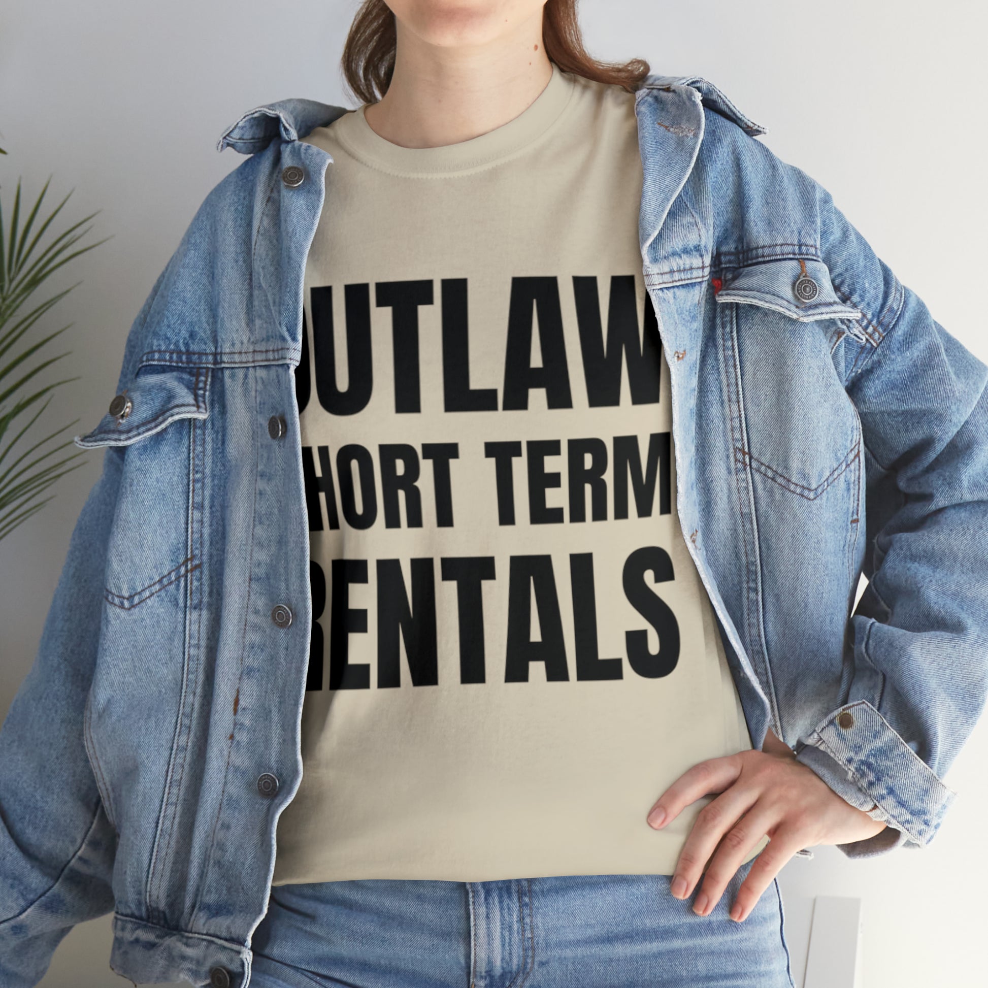Introducing the Outlaw Short Term Rentals Tee from Explore Block Island! This powerful shirt carries a message that resonates deeply with the struggle against income inequality on our beloved island. The design features bold letters declaring "Outlaw Short Term Rentals" as a call to action.
