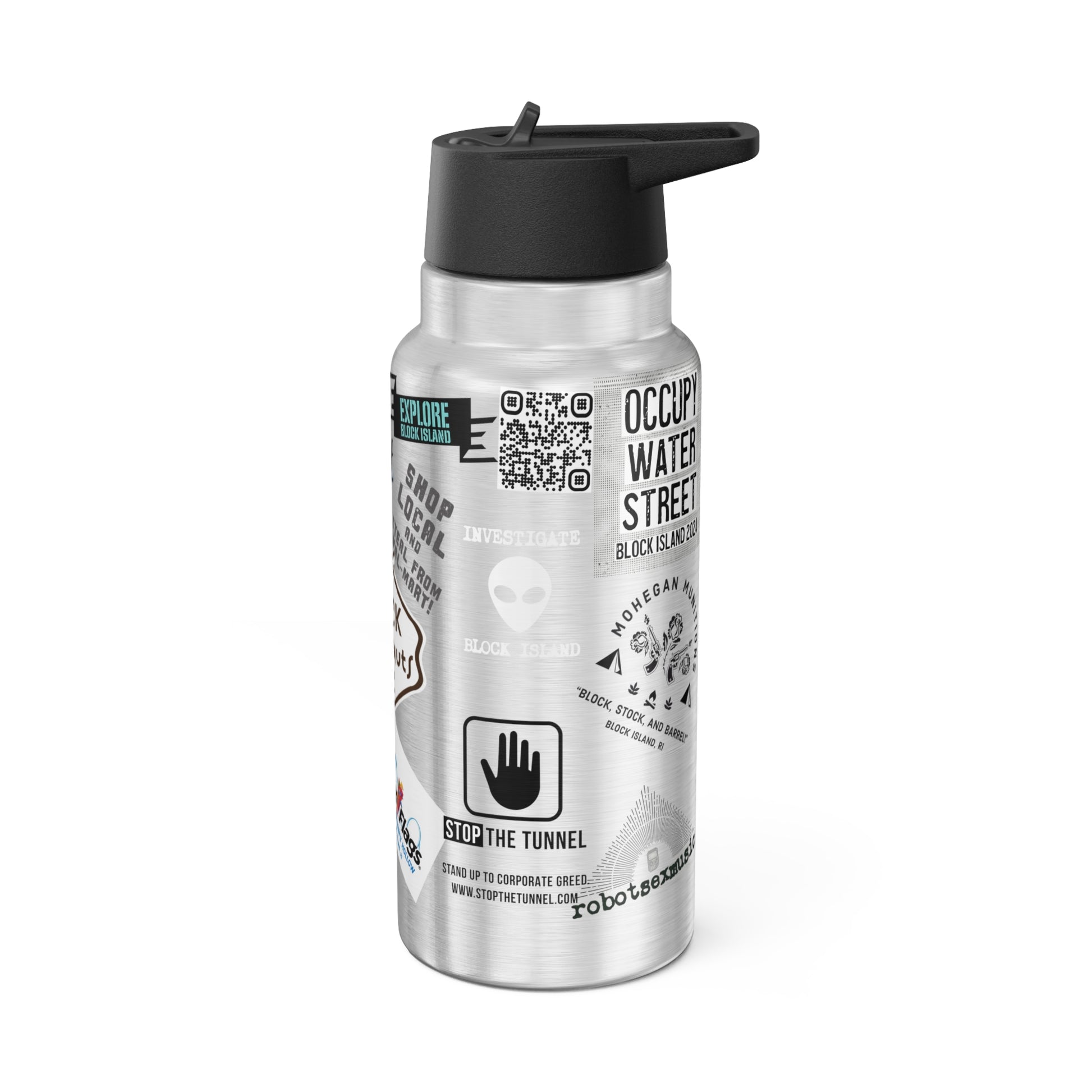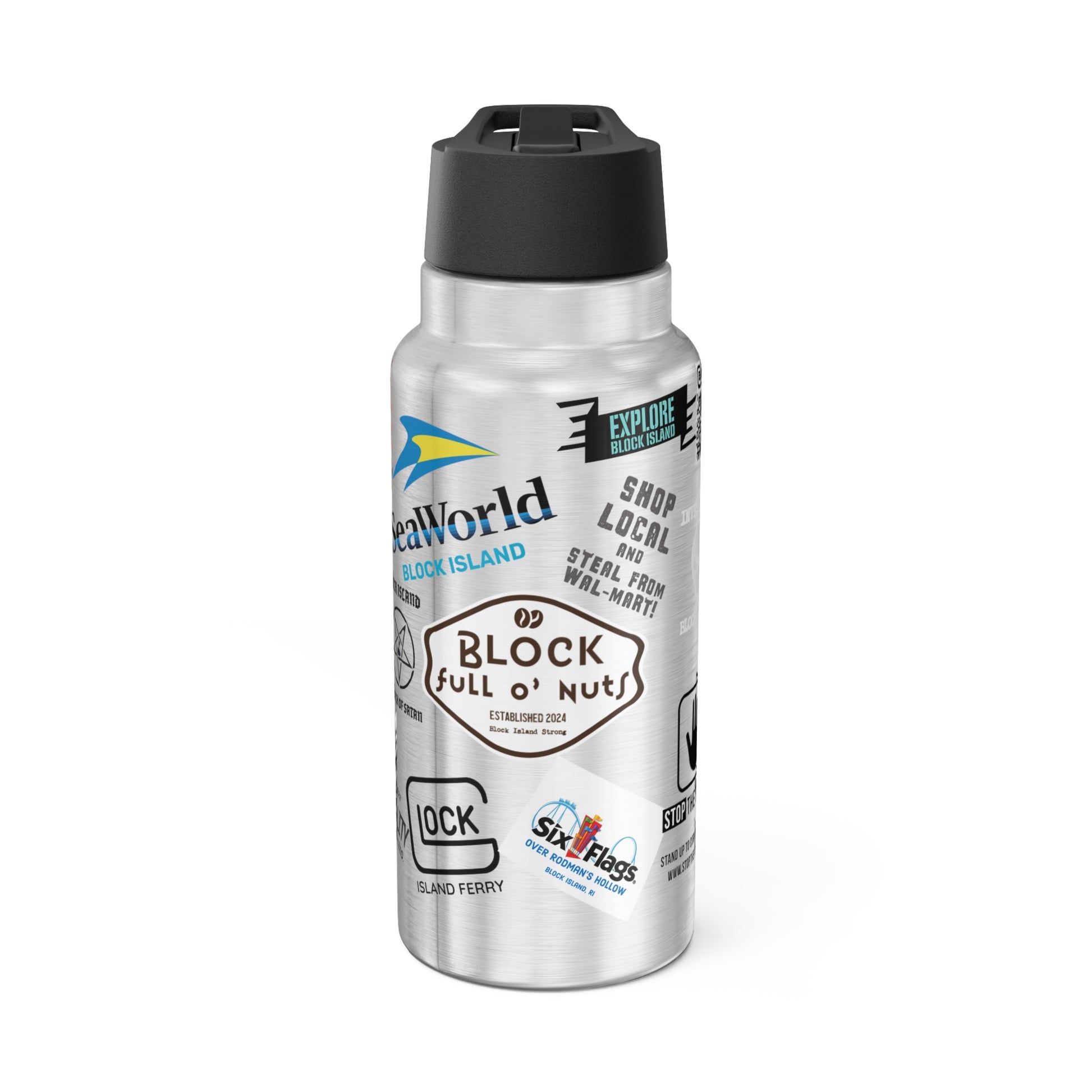 Here to help anyone swoosh thirst away with 32 oz. of their favorite beverage, these tumblers are sticker bombed with some of our favorite designs. Made with robust stainless steel, each of the custom-printed tumblers comes with a plastic drinking straw. Be sure to stay hydrated with our new tumbler as you Explore Block Island!