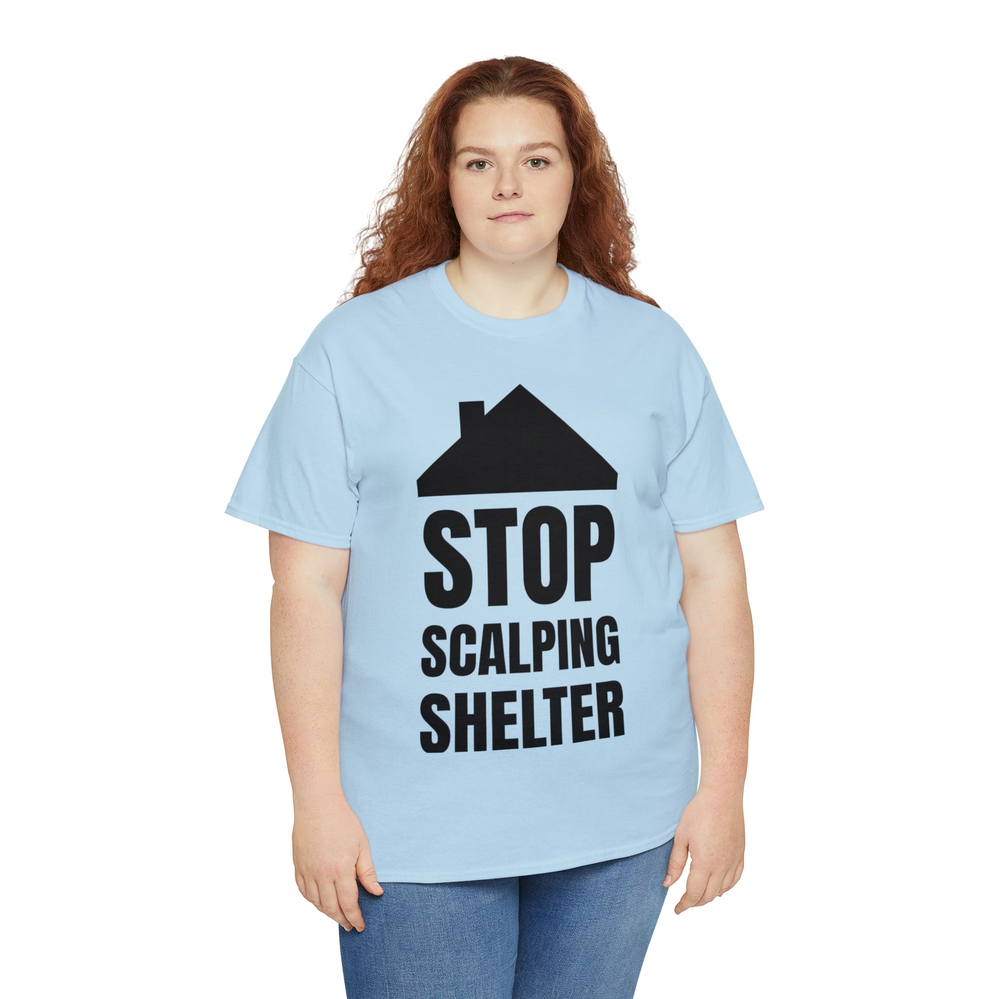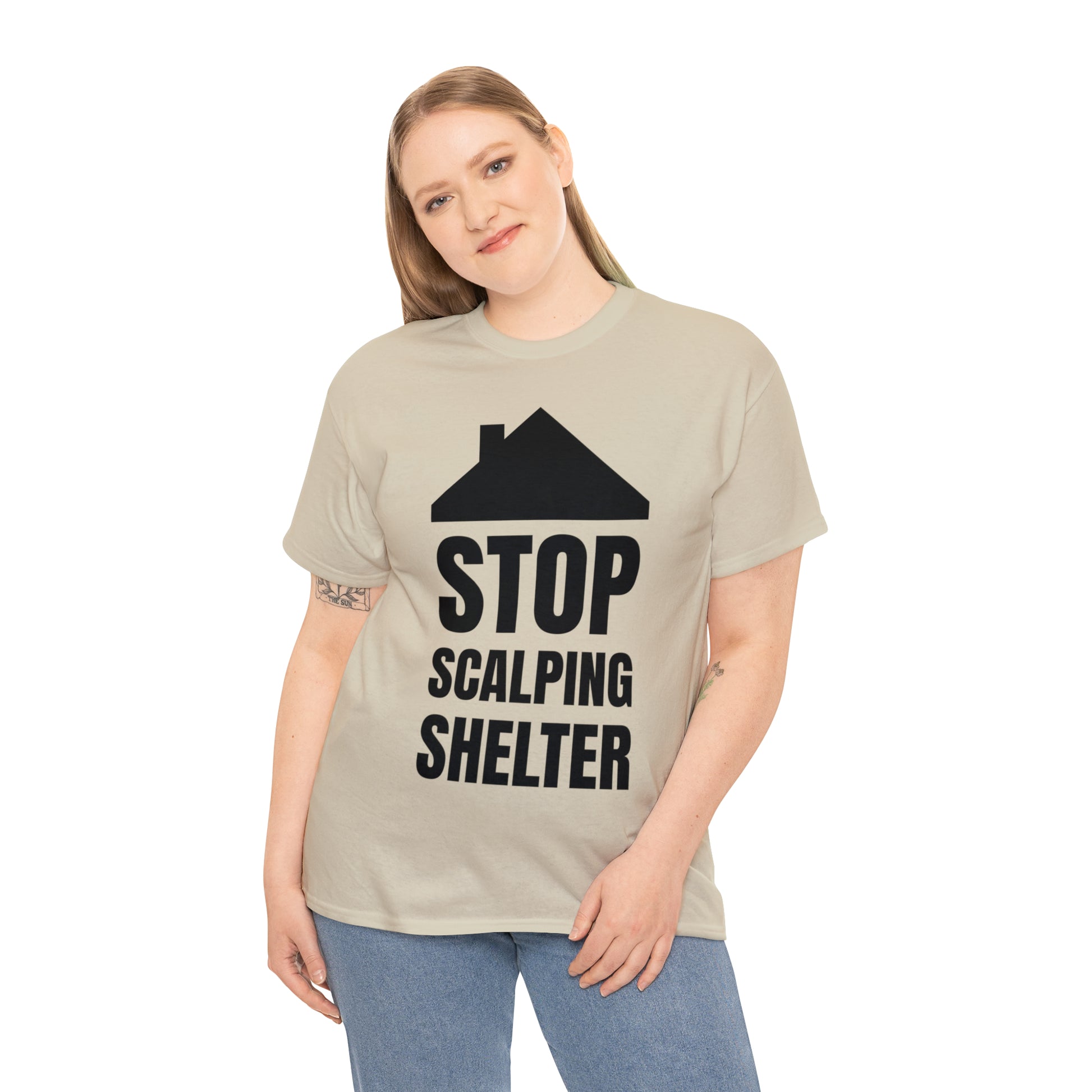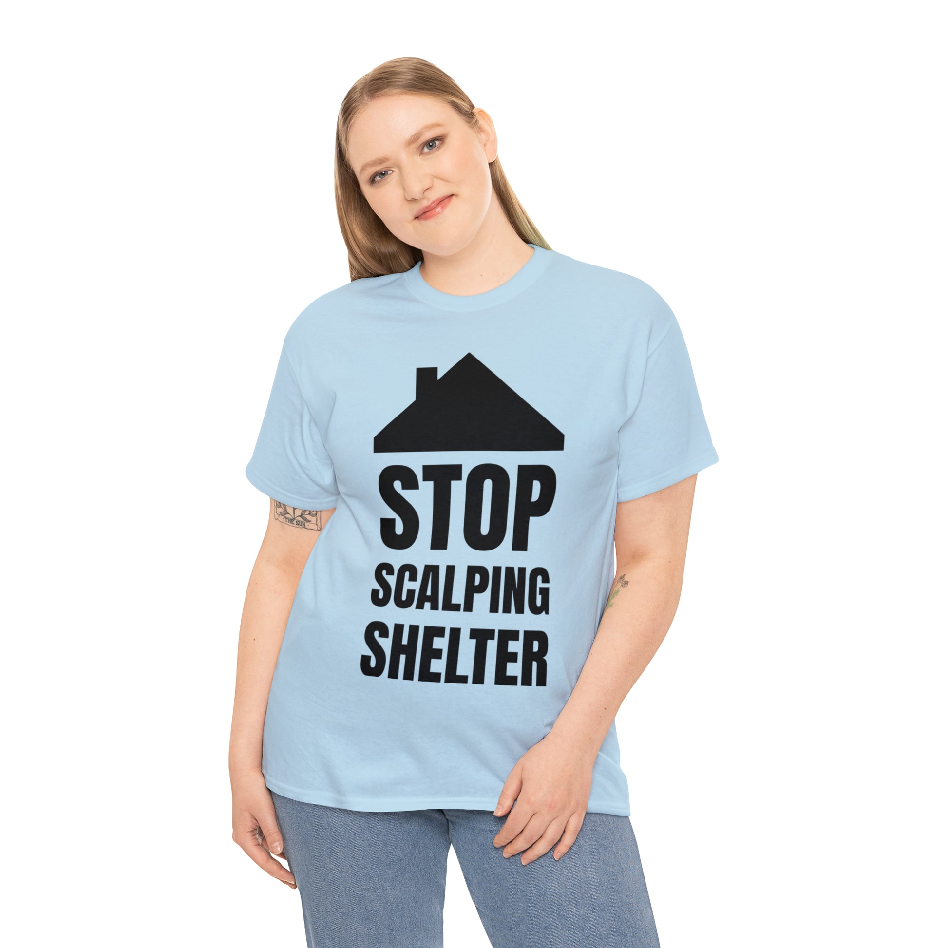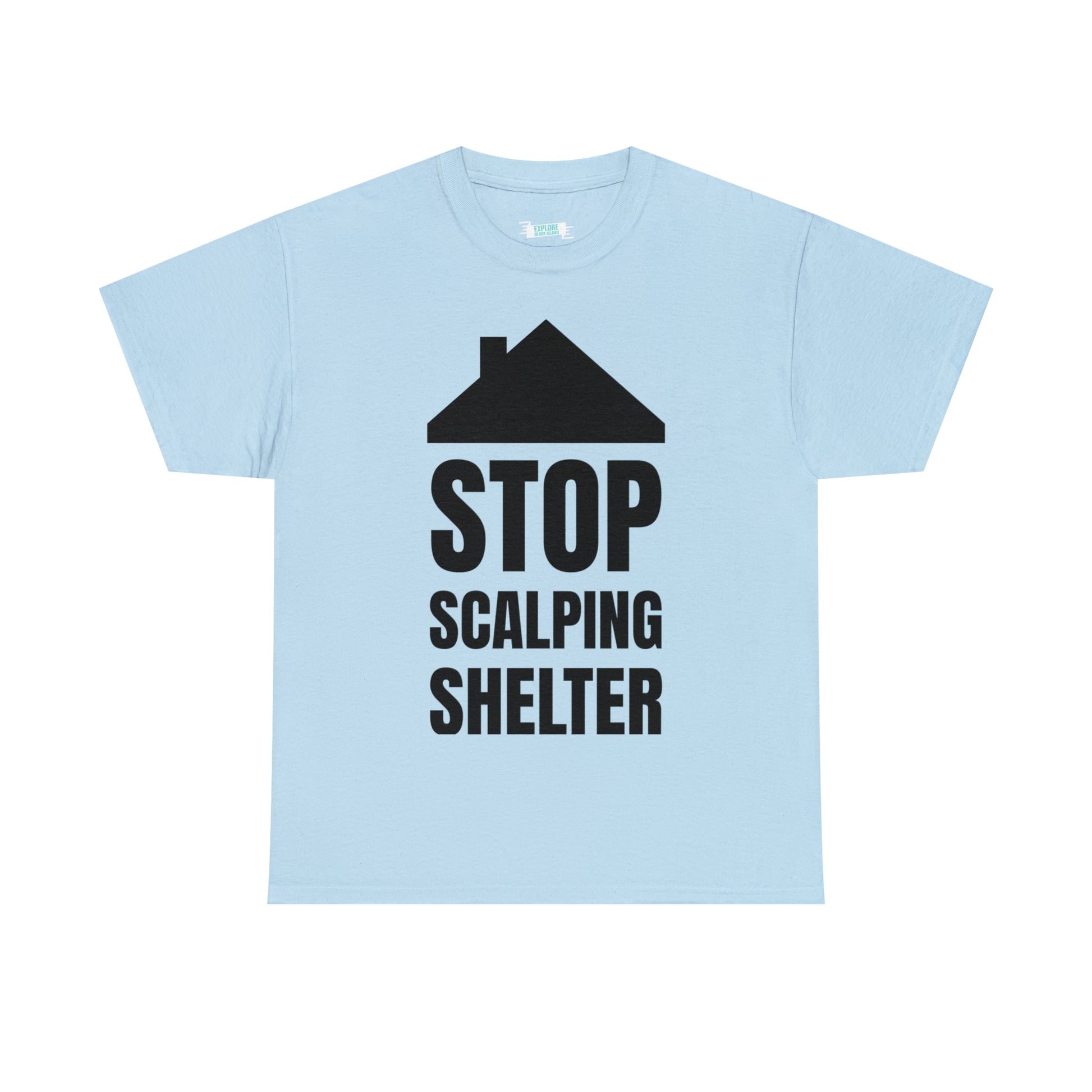 🏠 **Raise Your Voice**: Our tee boldly proclaims, "Stop Scalping Shelter," serving as a rallying cry against the exploitation of housing for profit. It's a powerful way to lend your voice to a cause that matters.