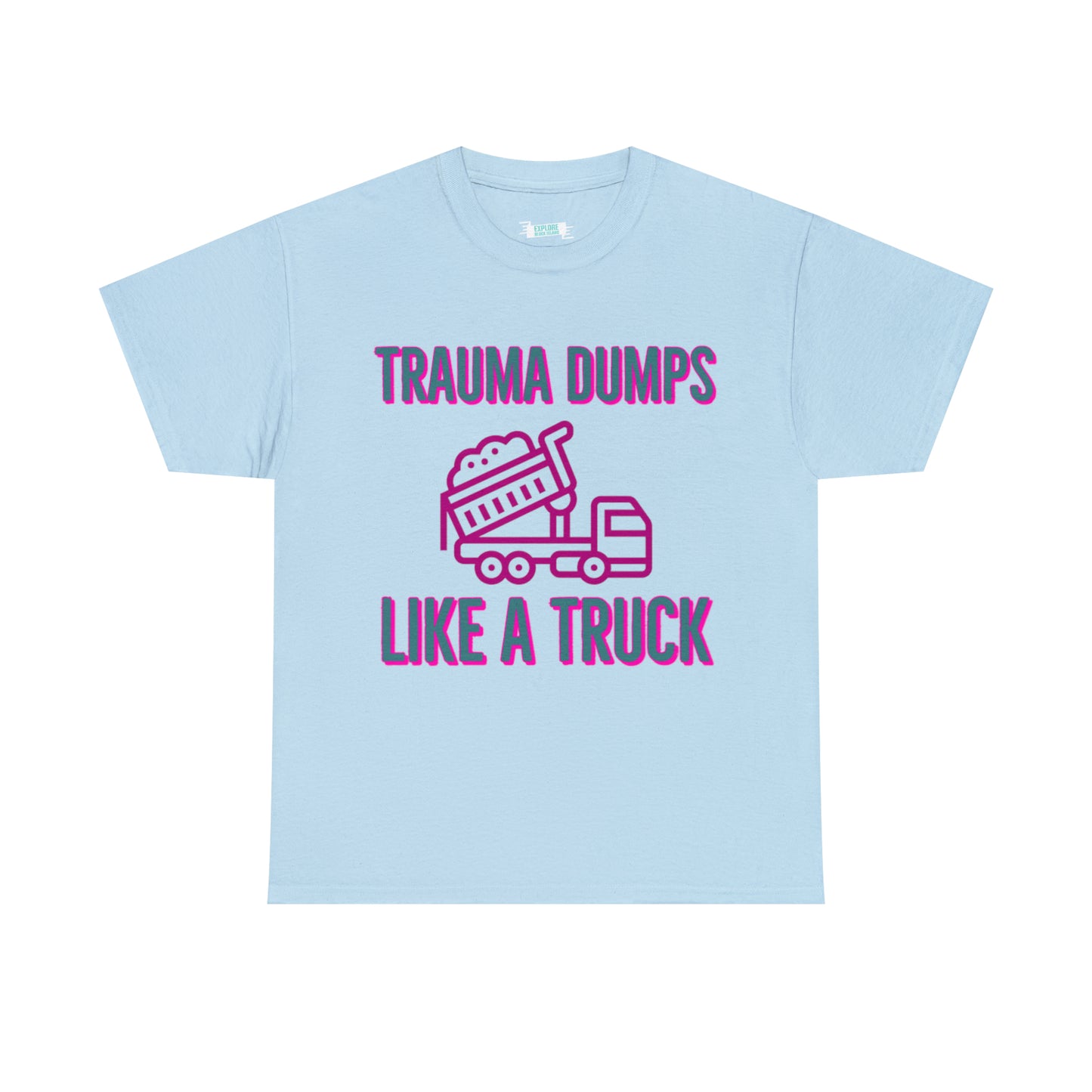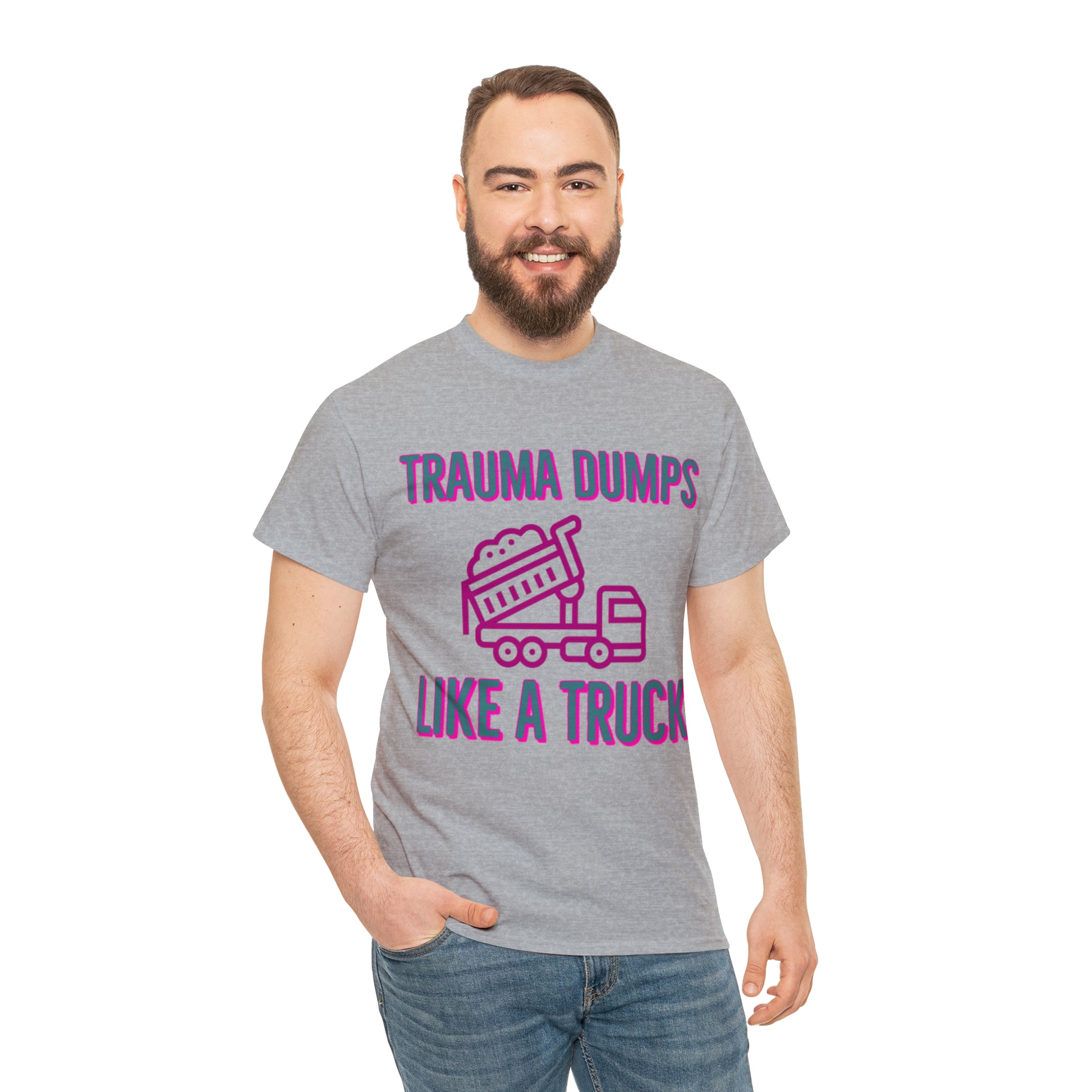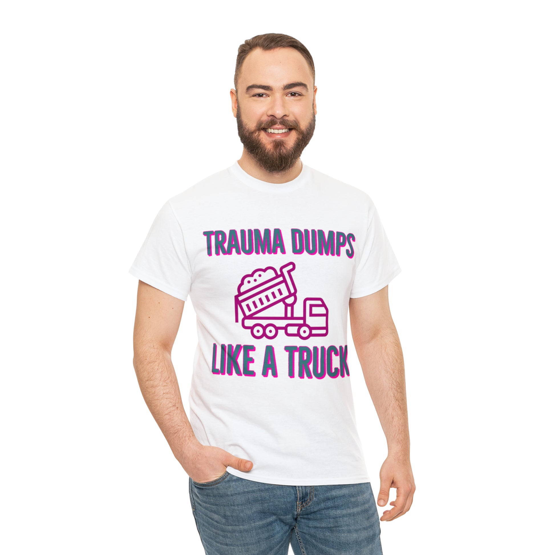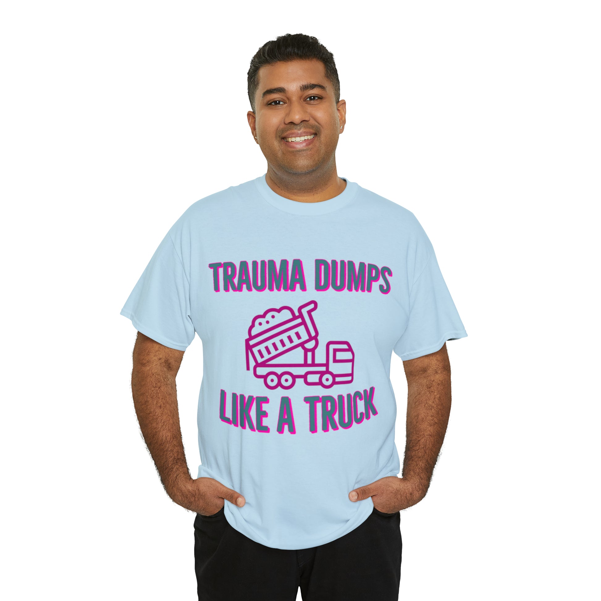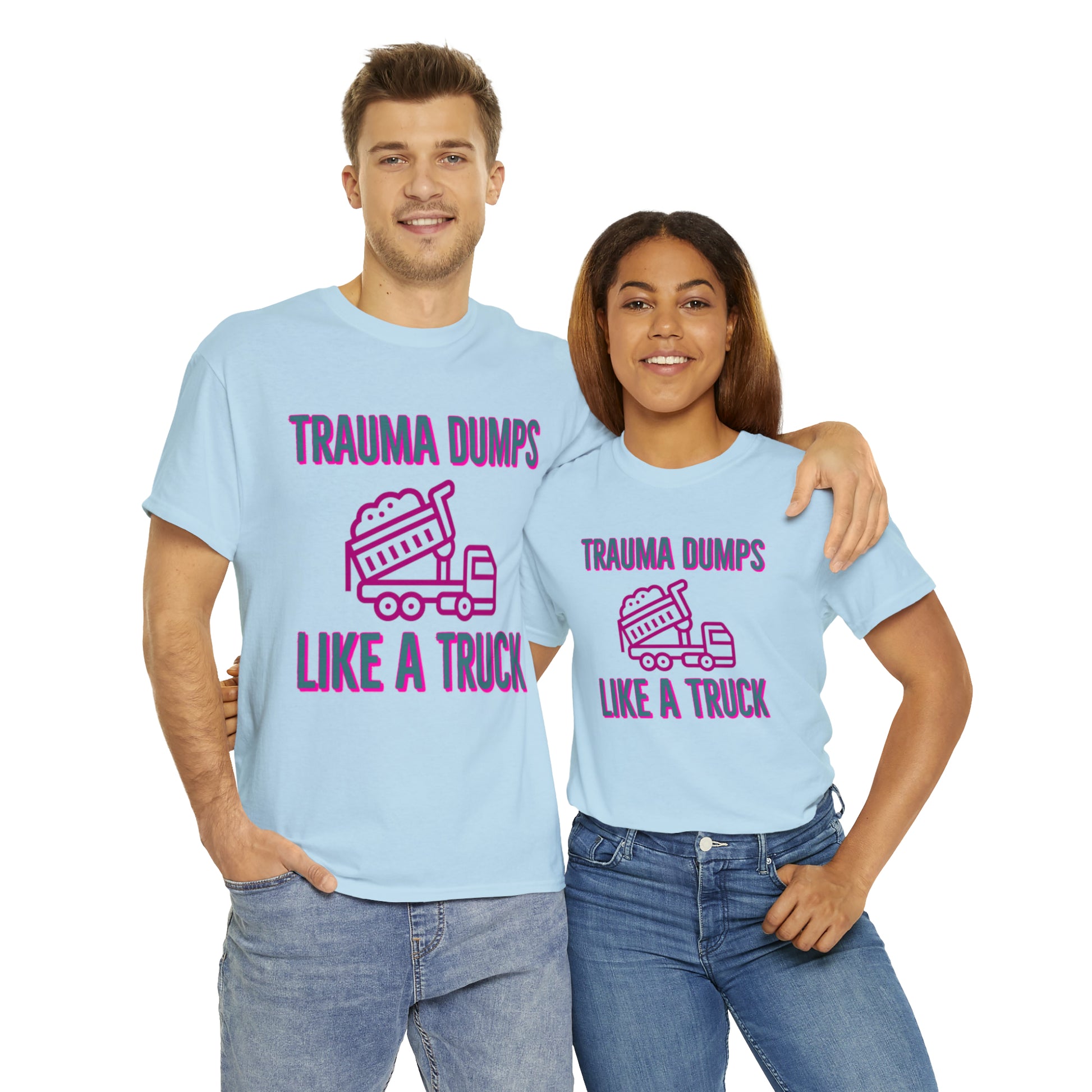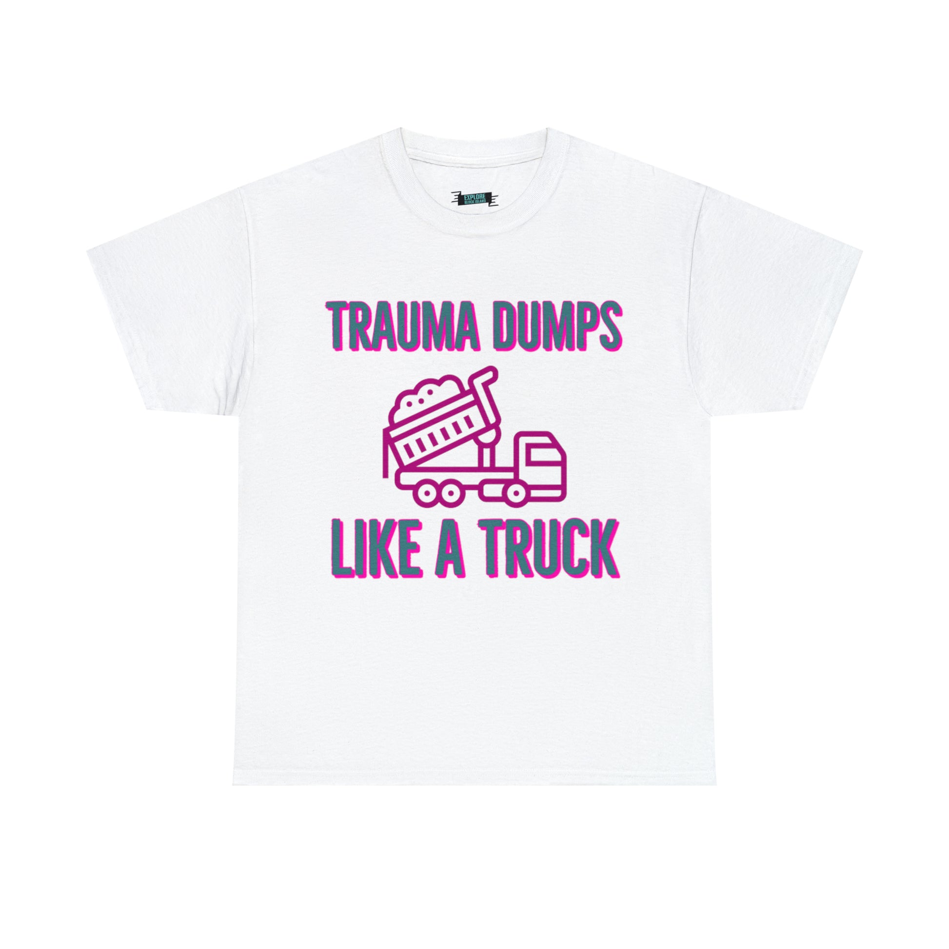 The Trauma Dump Tee features an eye-catching design showcasing a dump truck alongside the empowering words, "Trauma Dumps Like A Truck." This bold statement serves as a reminder that discussing and releasing our emotional burdens is a vital part of the healing process. By wearing this tee, you become an advocate for mental health, encouraging open dialogue and fostering a supportive environment.