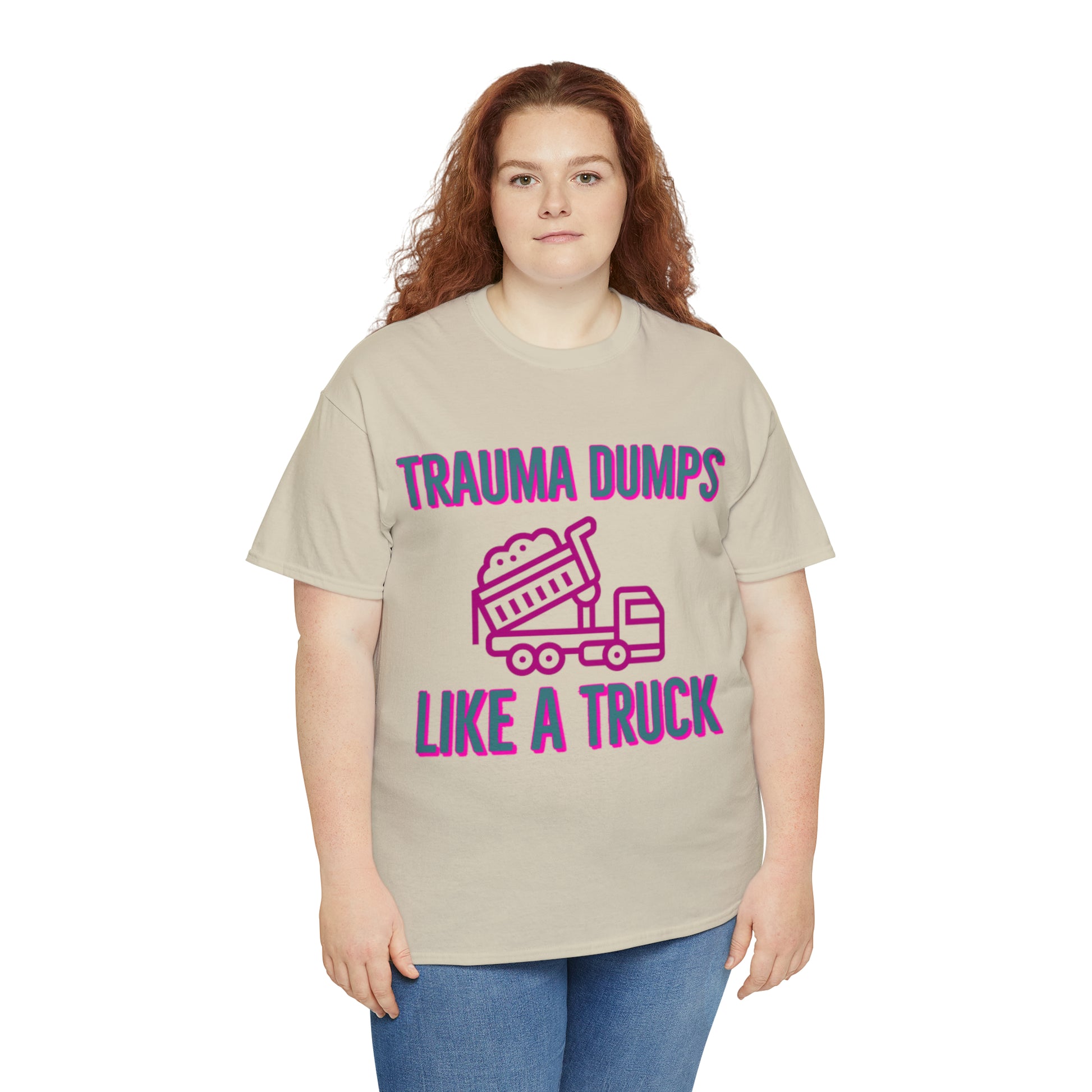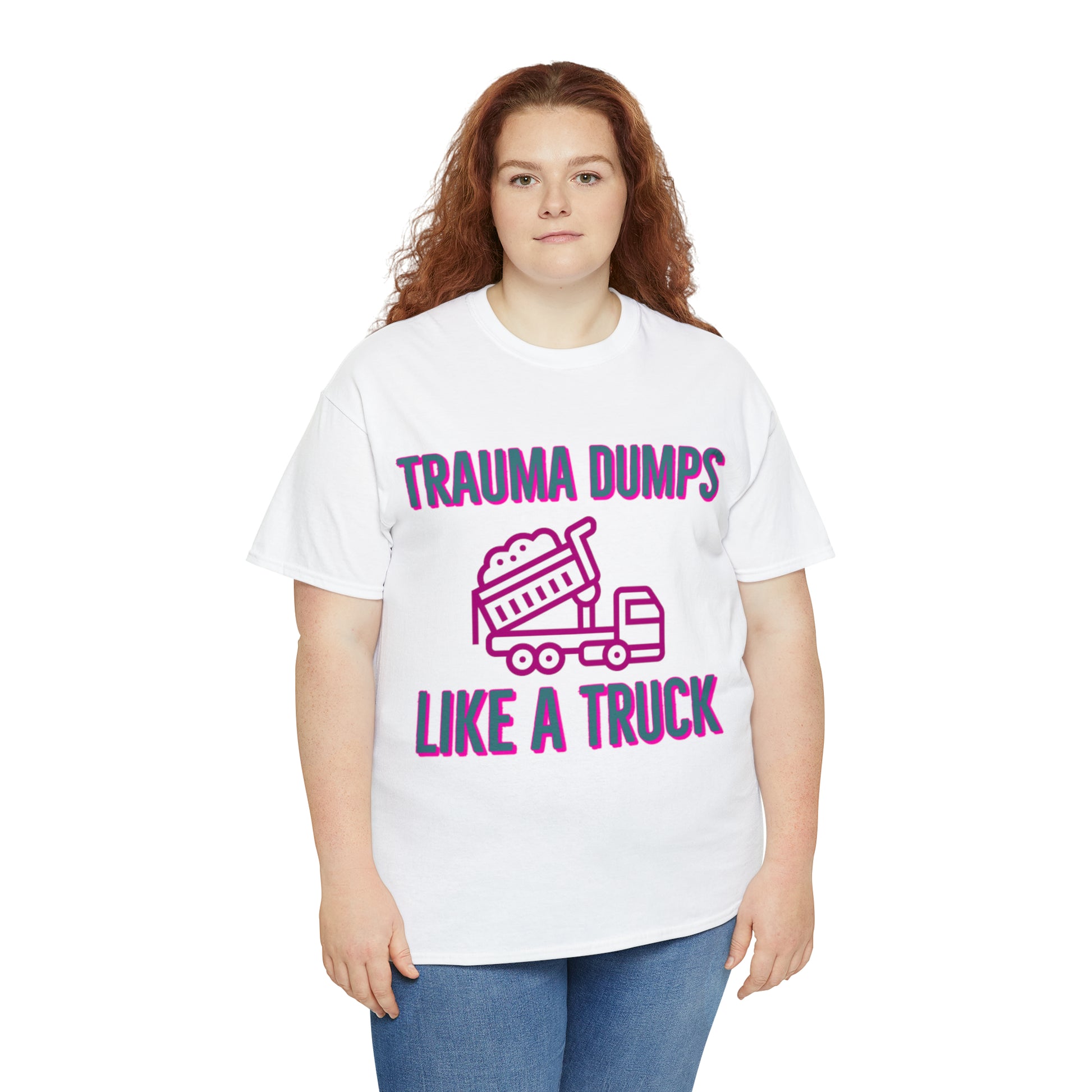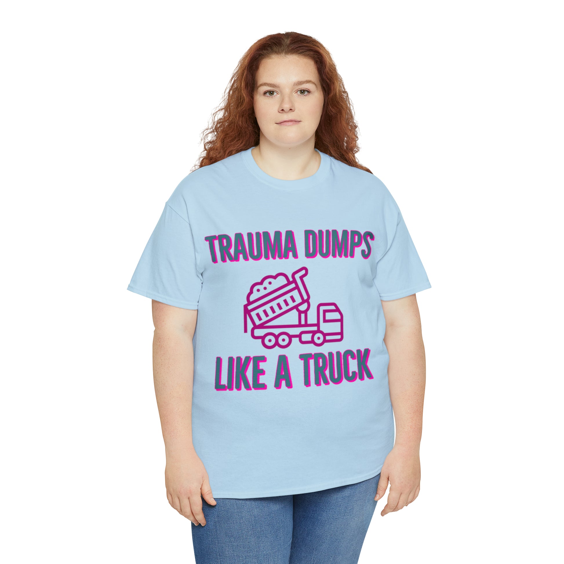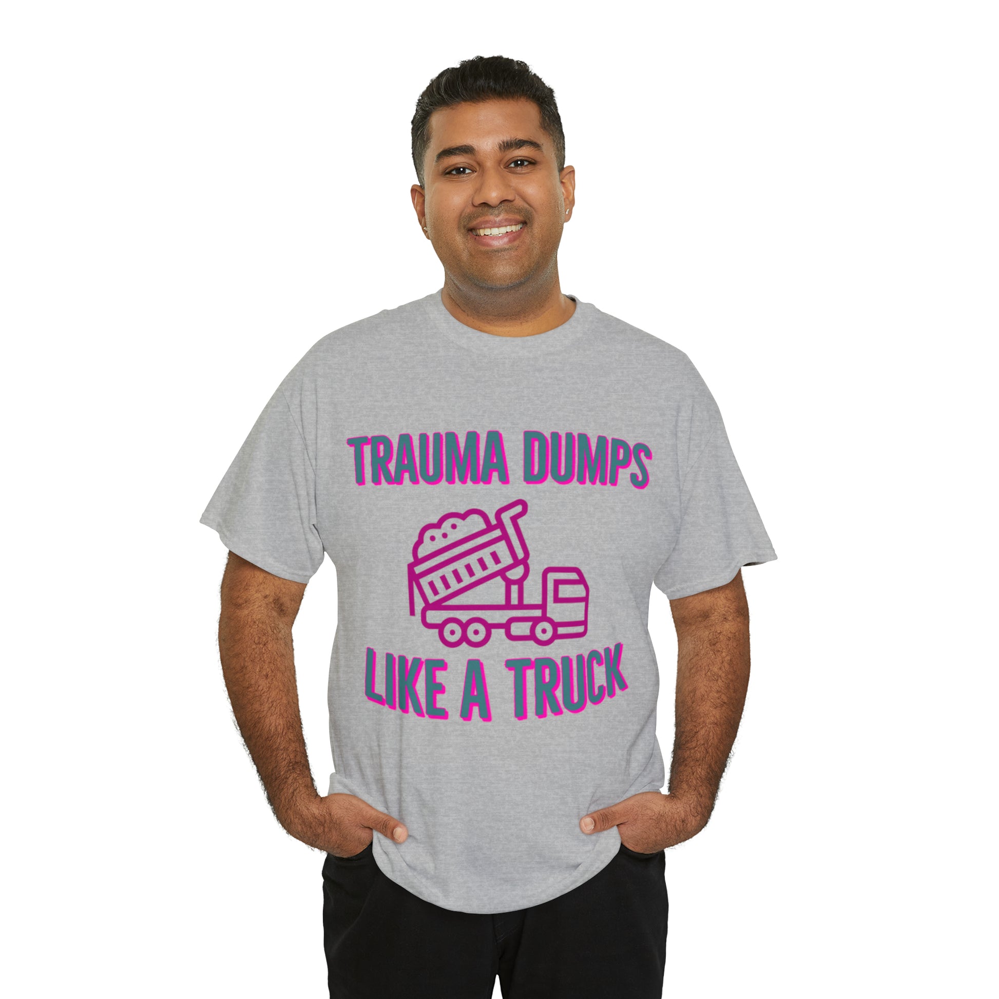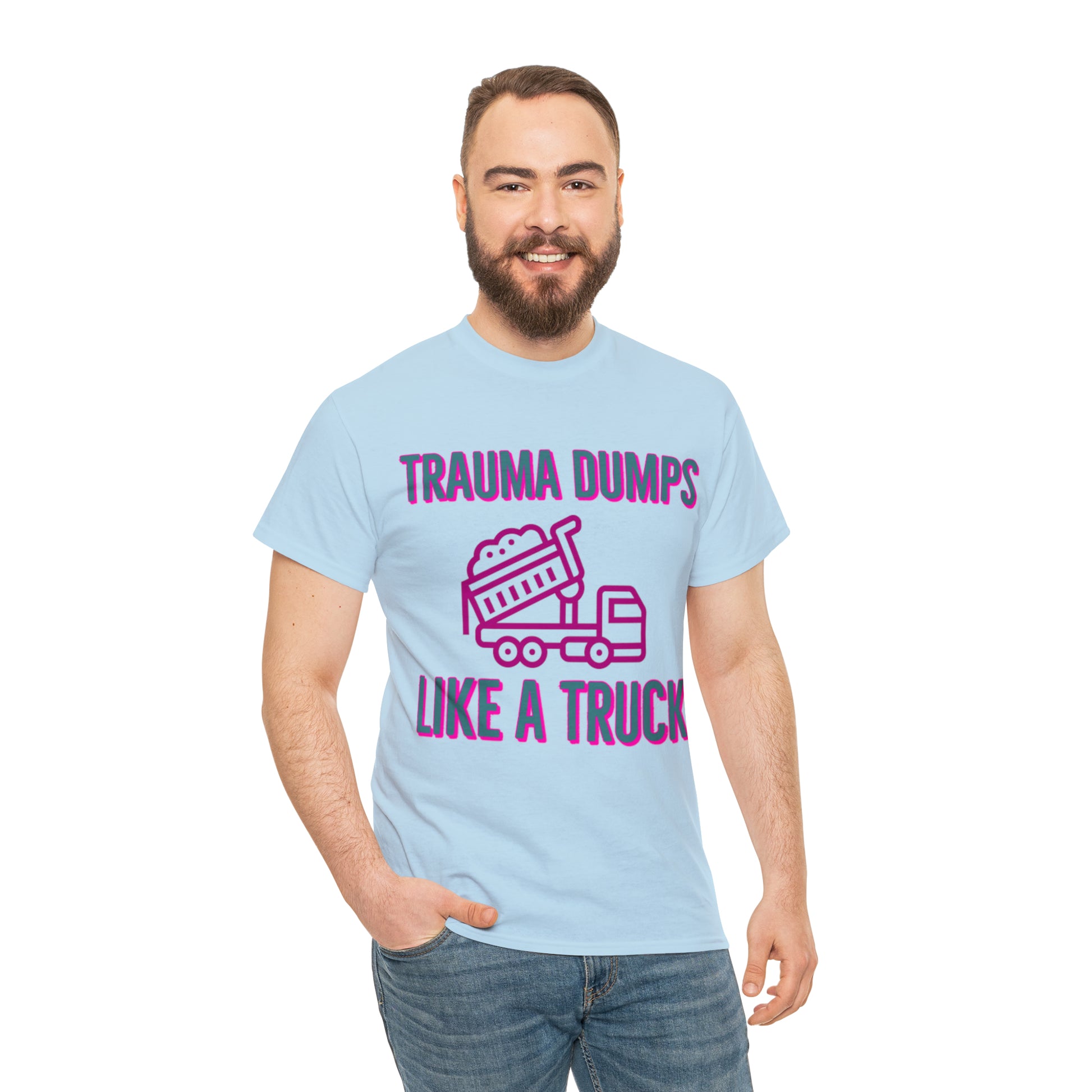 The Trauma Dump Tee features an eye-catching design showcasing a dump truck alongside the empowering words, "Trauma Dumps Like A Truck." This bold statement serves as a reminder that discussing and releasing our emotional burdens is a vital part of the healing process. By wearing this tee, you become an advocate for mental health, encouraging open dialogue and fostering a supportive environment.