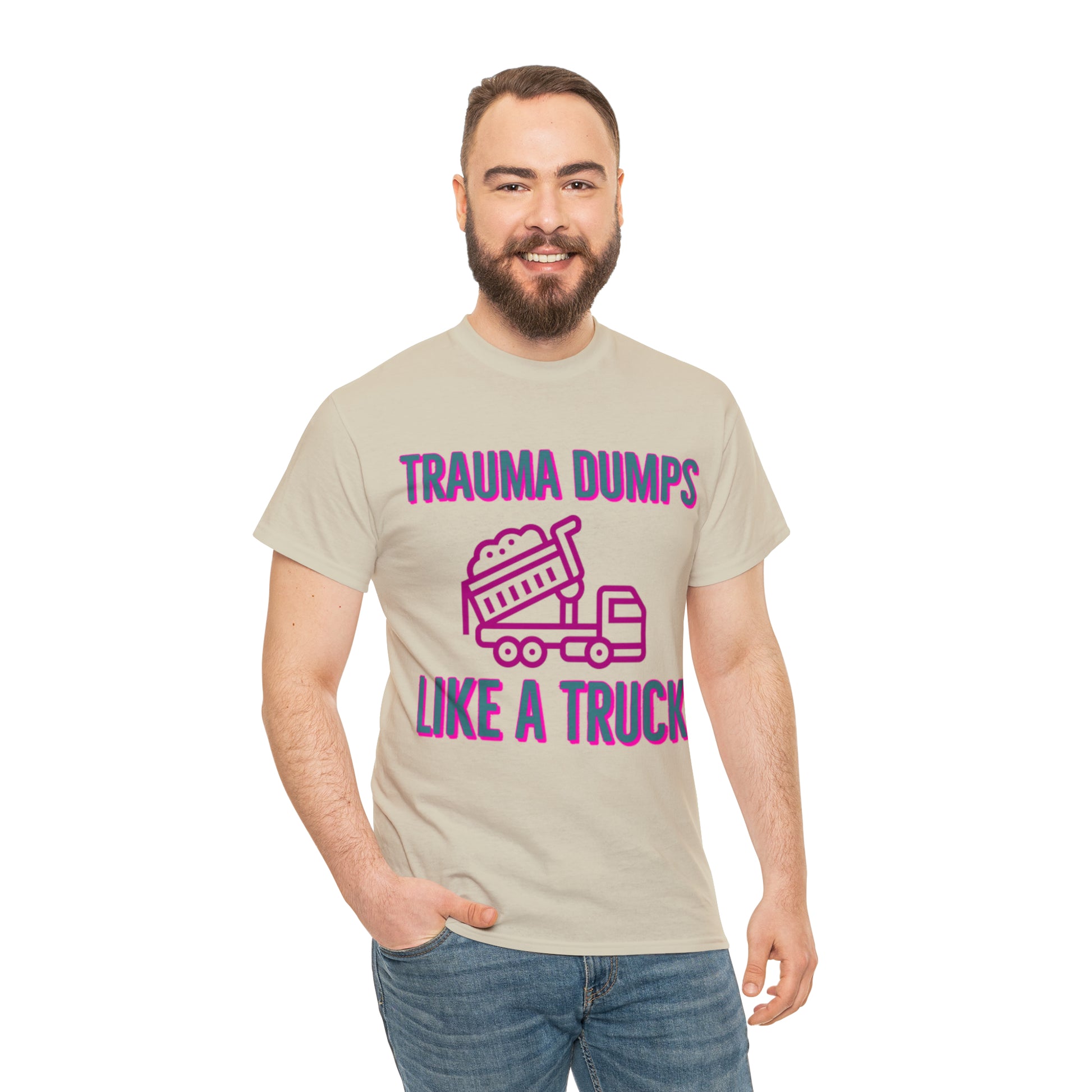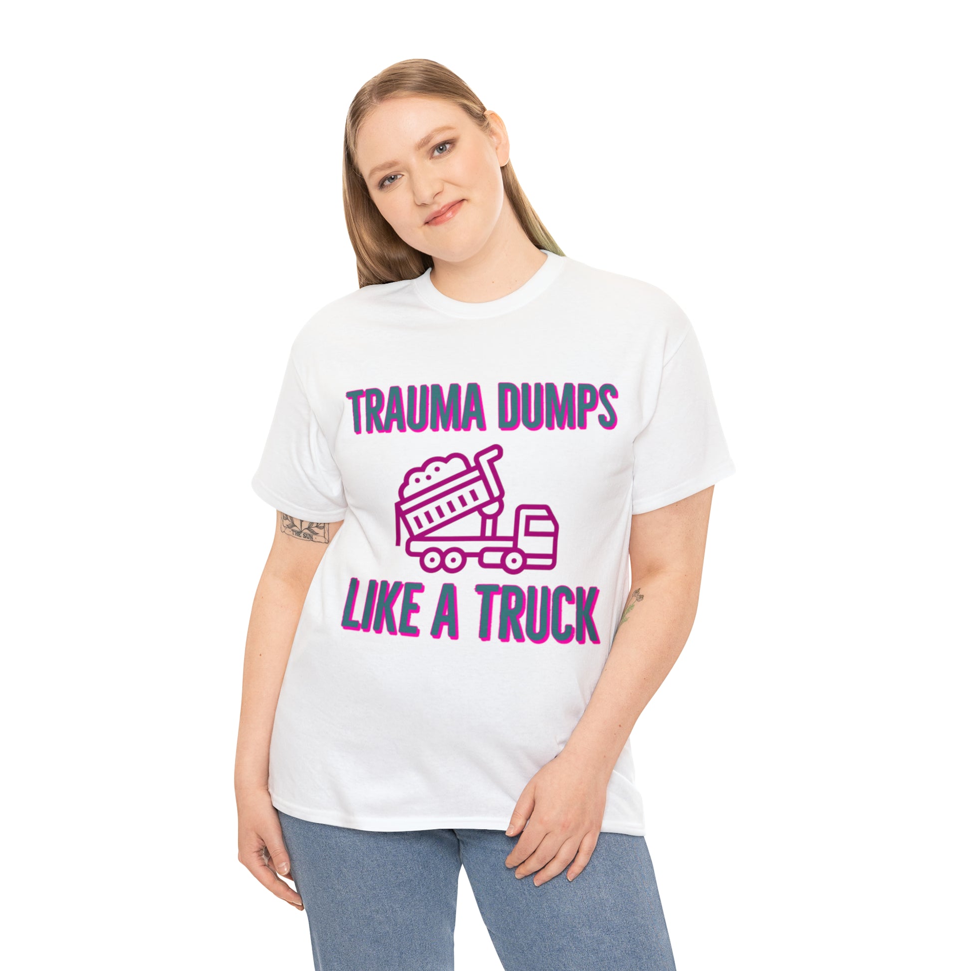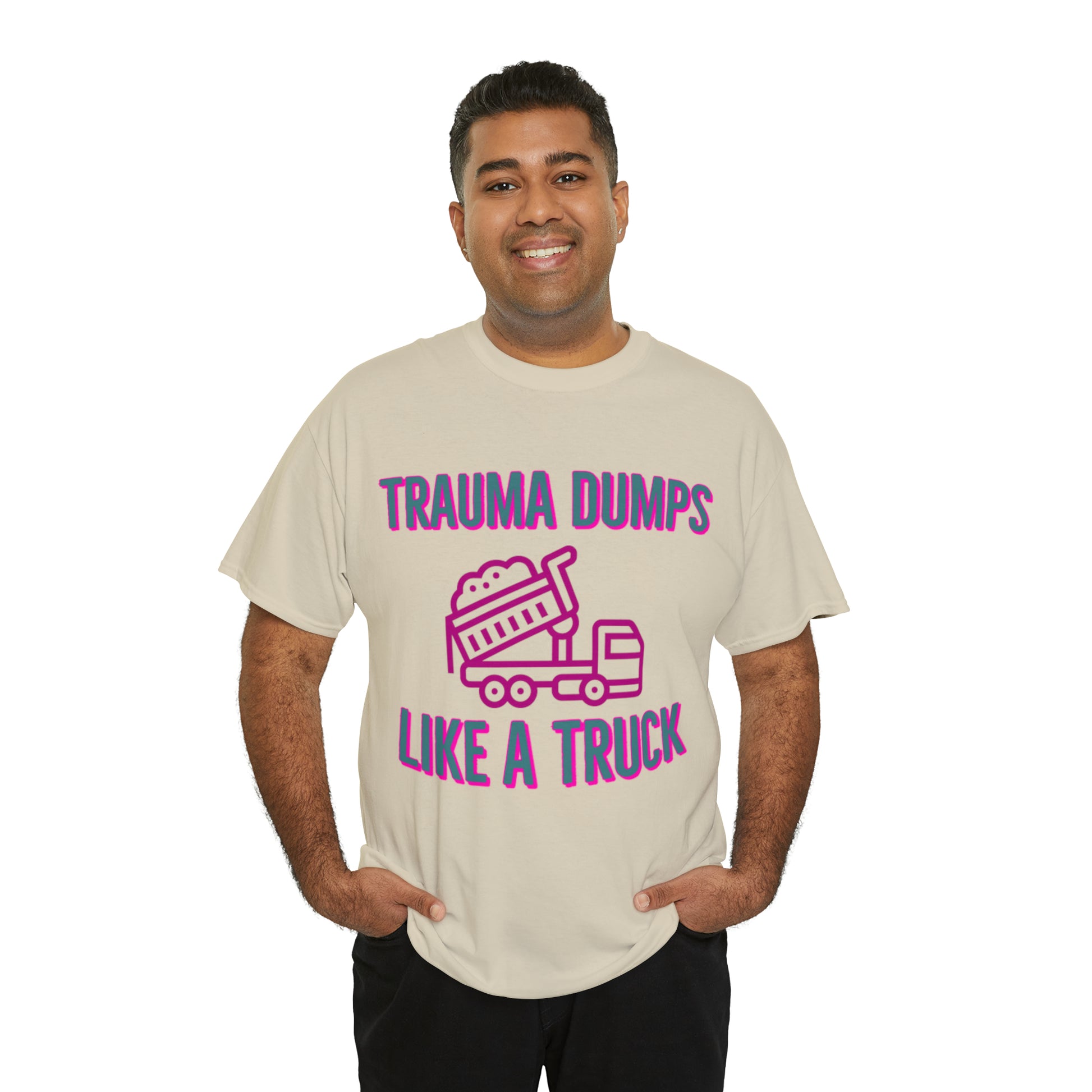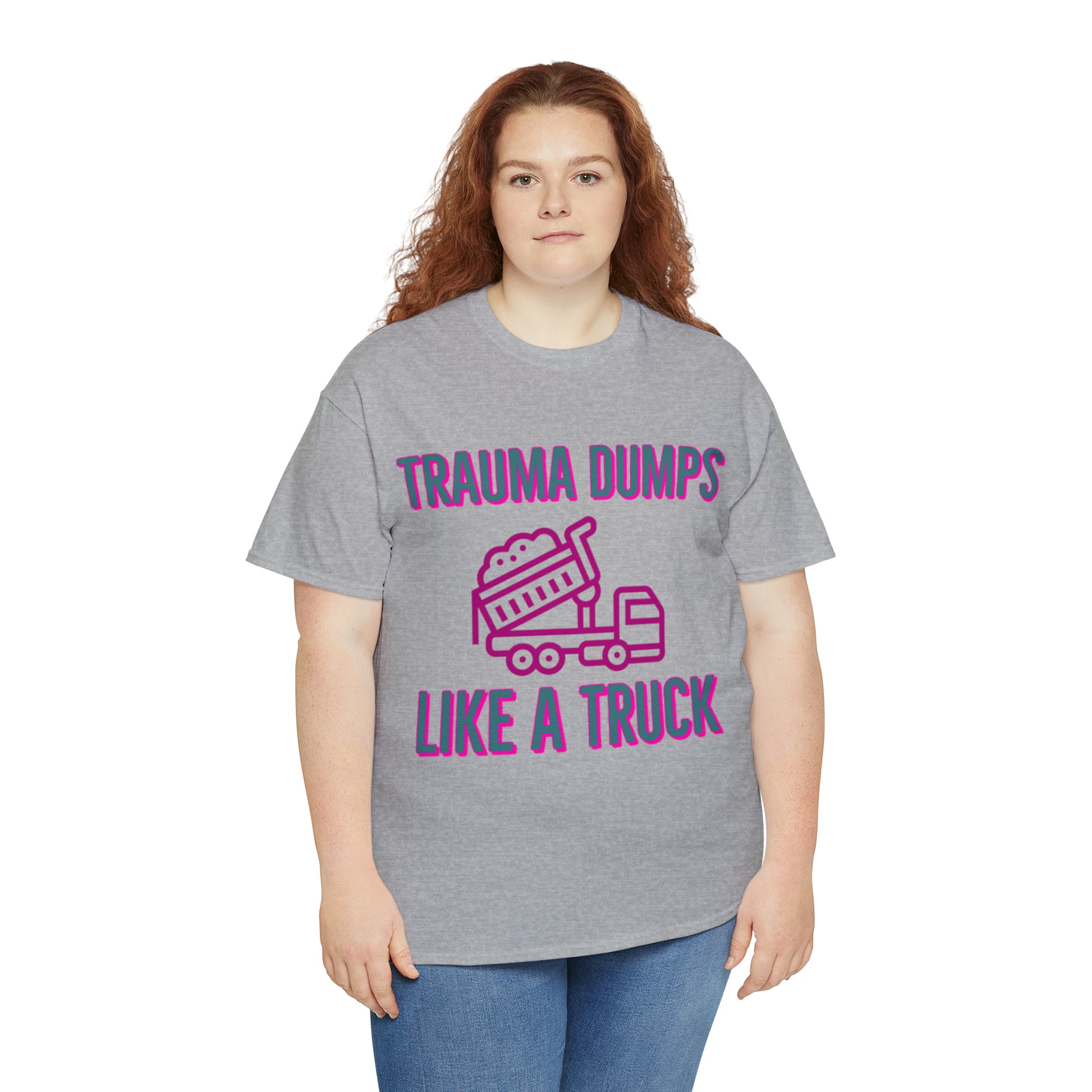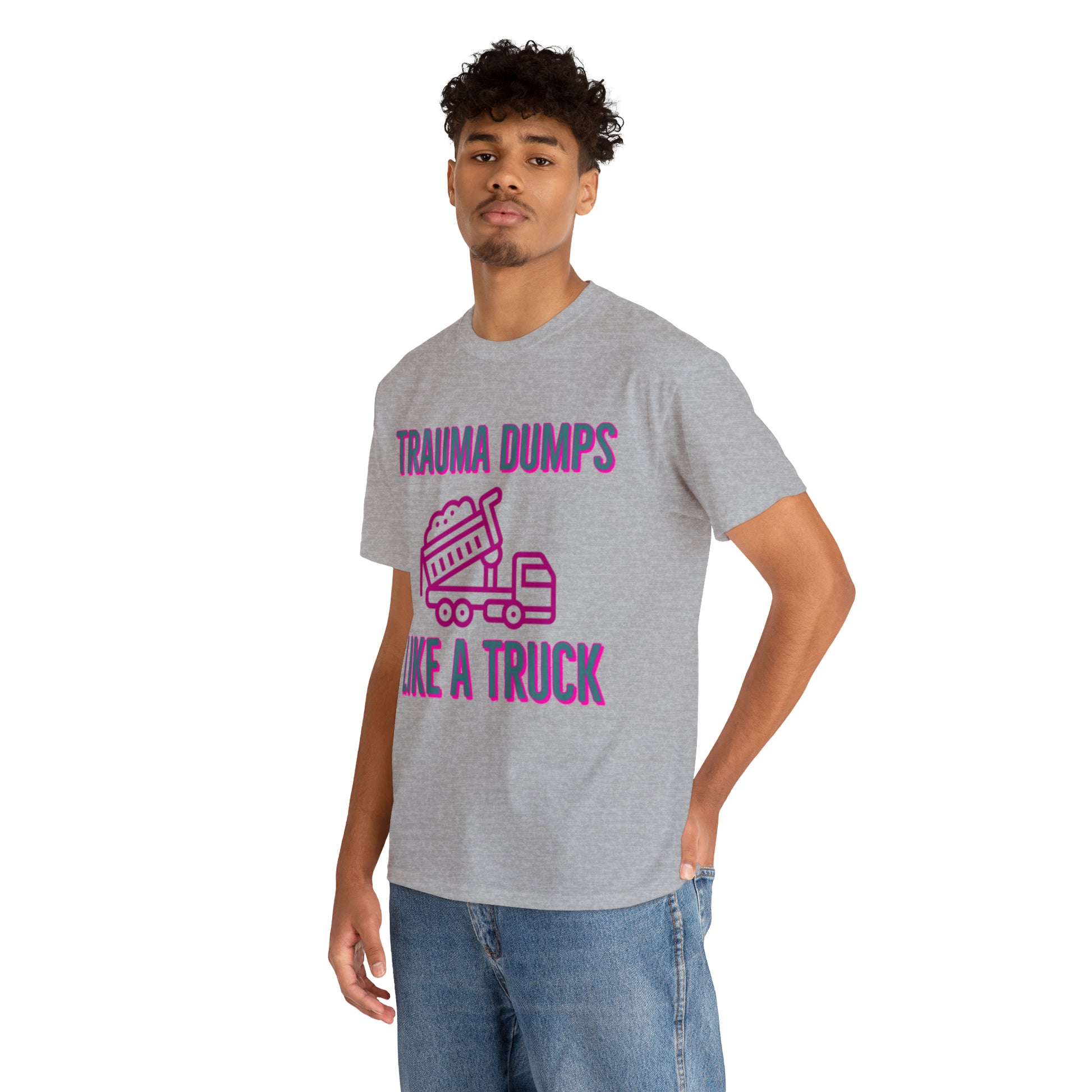 The Trauma Dump Tee features an eye-catching design showcasing a dump truck alongside the empowering words, "Trauma Dumps Like A Truck." This bold statement serves as a reminder that discussing and releasing our emotional burdens is a vital part of the healing process. By wearing this tee, you become an advocate for mental health, encouraging open dialogue and fostering a supportive environment.