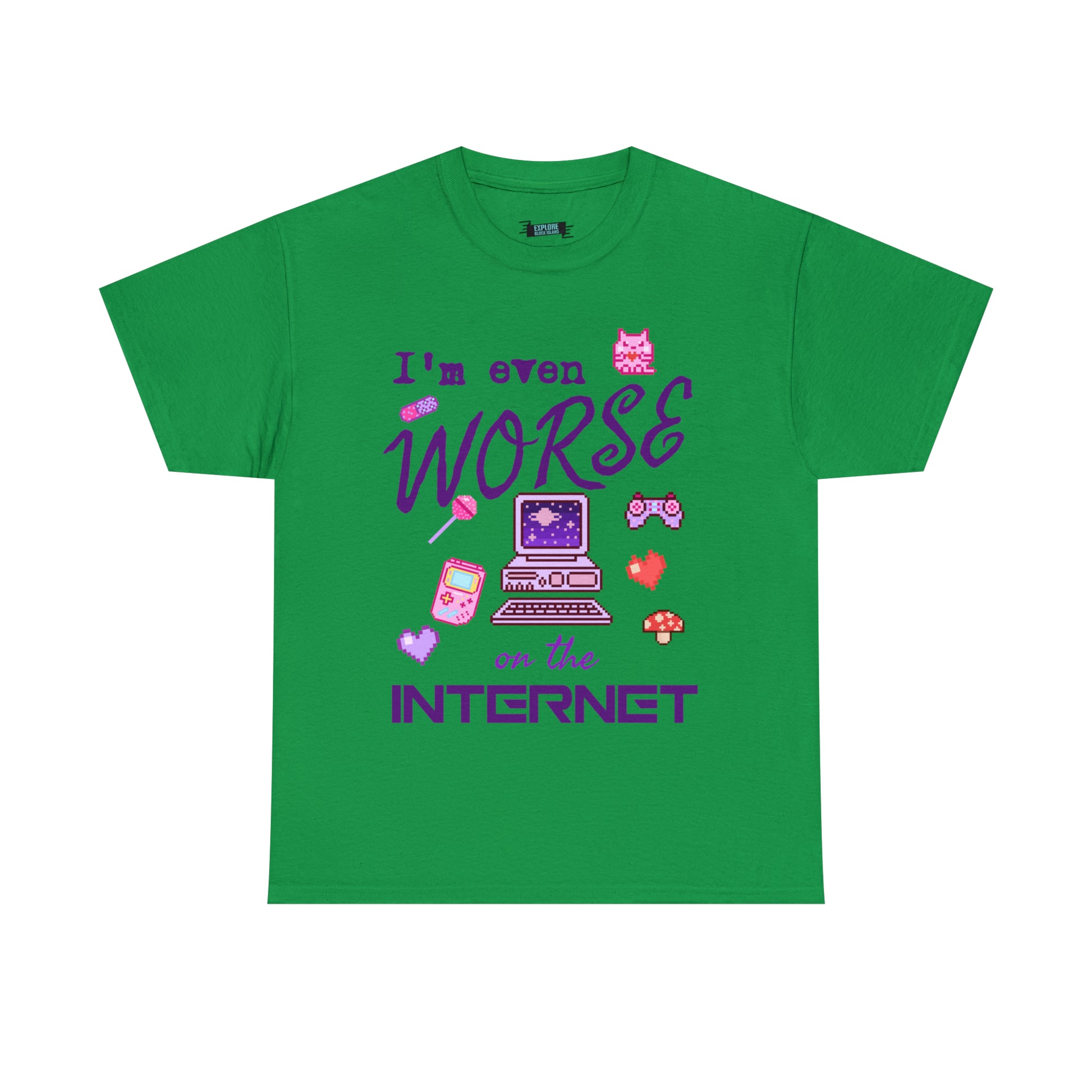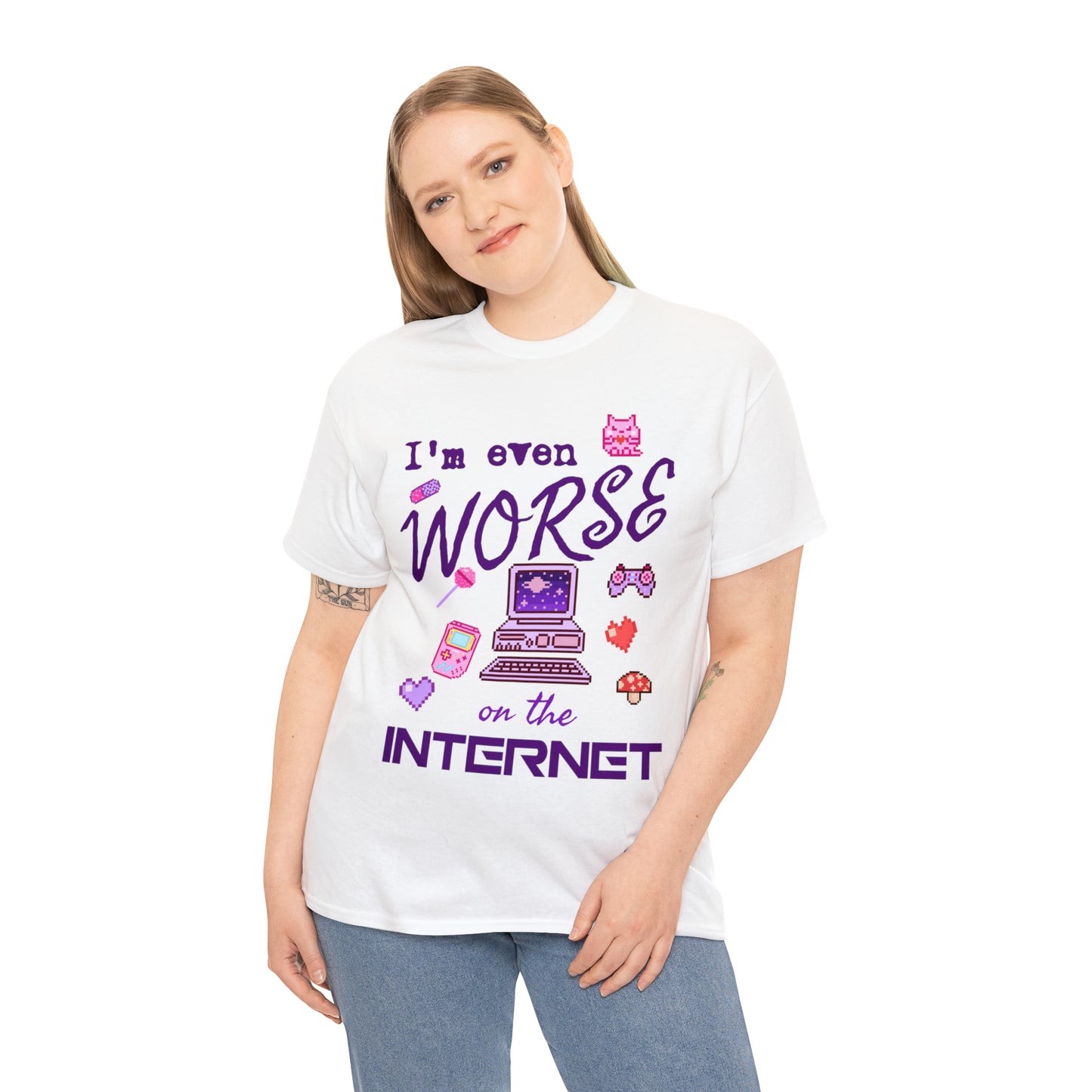 Join us in celebrating the internet's wild and wacky past. Whether you're a pixel art enthusiast, a '90s kid, or simply someone who enjoys a good laugh, the "Worse On The Internet Tee" is the perfect addition to your wardrobe. Get ready to wear your online persona with pride and a whole lot of fun!